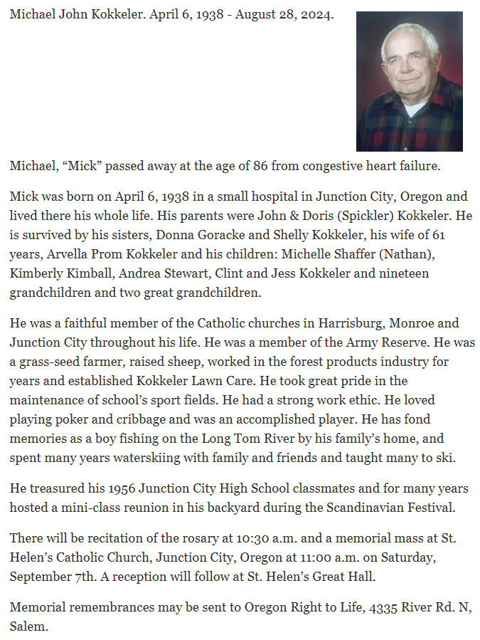 | Died: | August 28, 2024 in Lane County, OR. View Obituary |