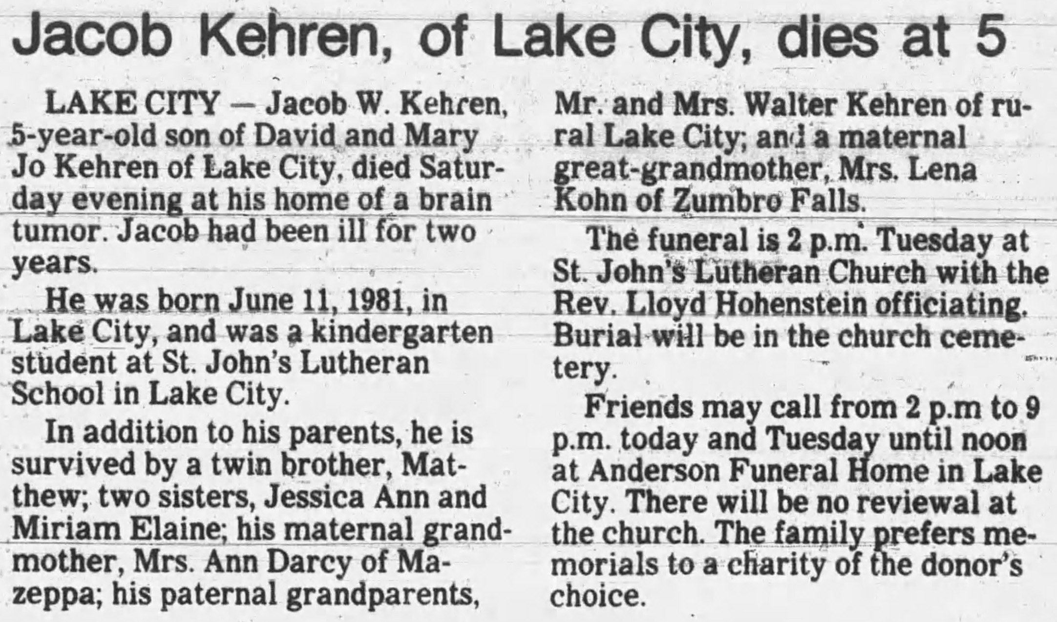 | Parents: | David Walter Kehren and Mary Jo Ann Darcy |