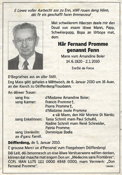 | Died: | January 2, 2010 in Differdange, Luxembourg. |