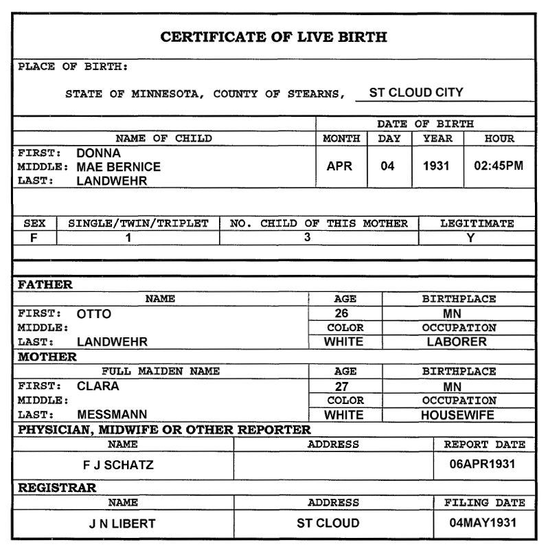 Born: | January 30, 1929 in St. Augusta Township, Stearns Co, MN. |