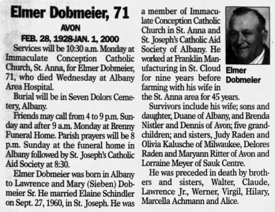 | Parents: | Lawrence Dobmeier and Mary Sieben |