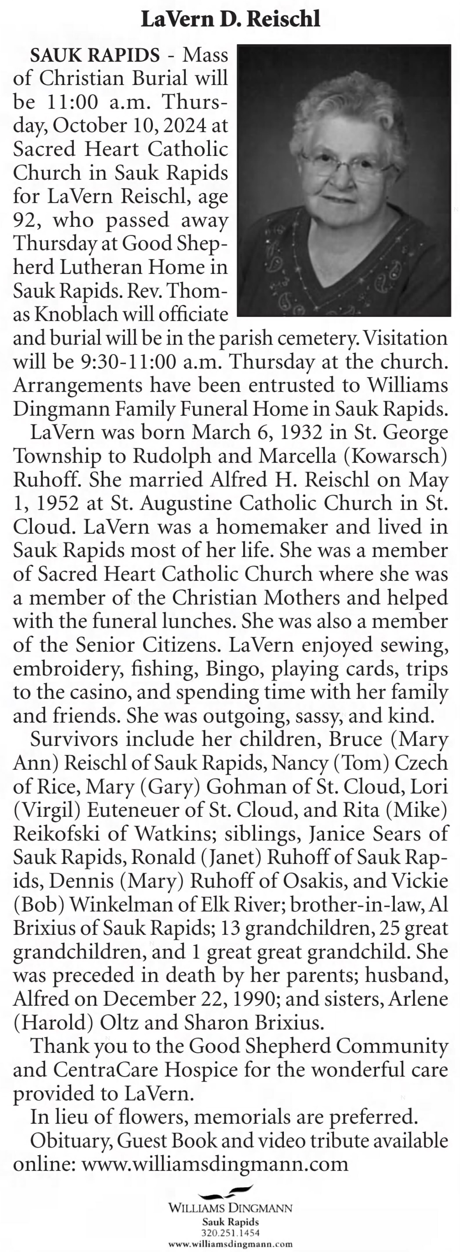 Buried: | Sacred Heart Cemetery, Sauk Rapids, Benton Co, MN. |
