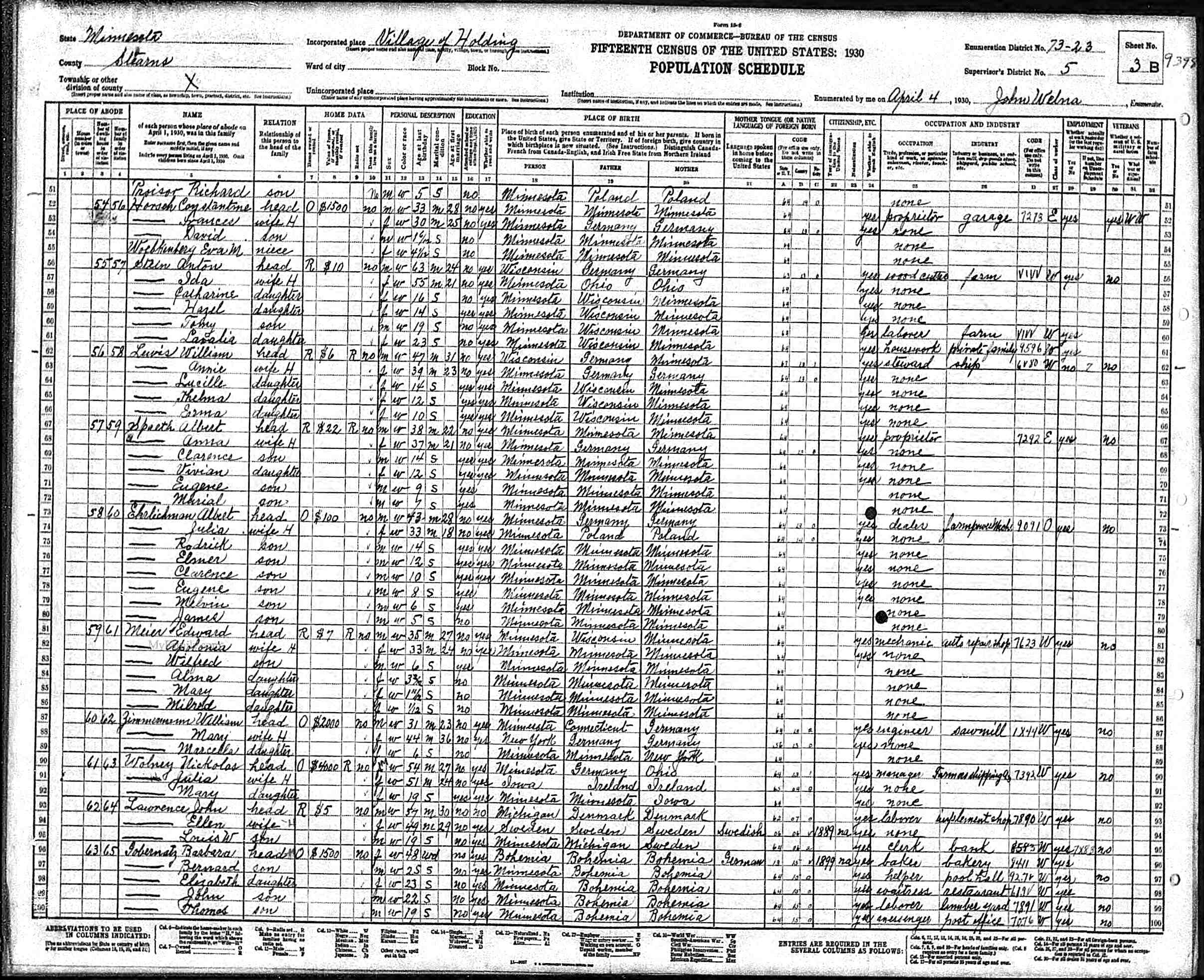 - 1930 Census - Holding Township, Stearns Co, MN (Listed as Elizabeth, age 23, daughter of Barbara Gobernatz)