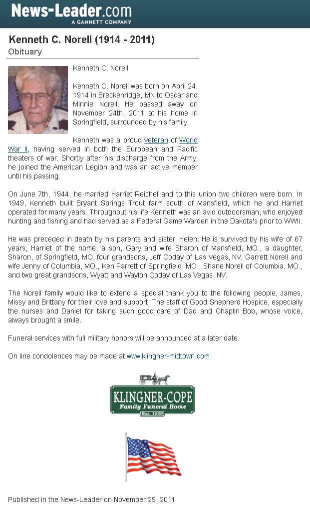 | Died: | November 24, 2011 in Springfield, Greene Co, MO. View Obituary |