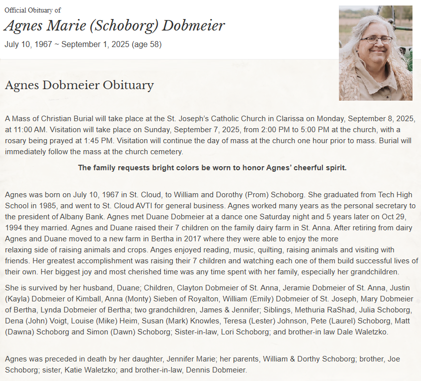Buried: | St. Joseph Cemetery, Clarissa, Todd Co, MN. |