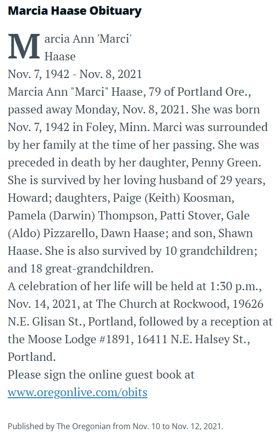| Born: | November 7, 1942 in Foley, Benton Co, MN. |