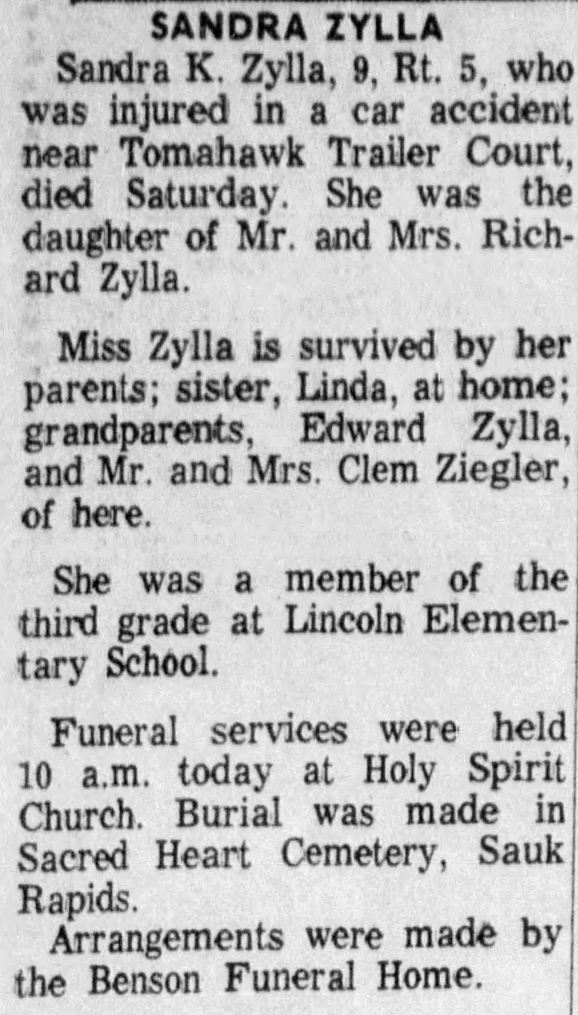 | Buried: | Sacred Heart Cemetery, Sauk Rapids, Benton Co, MN. |