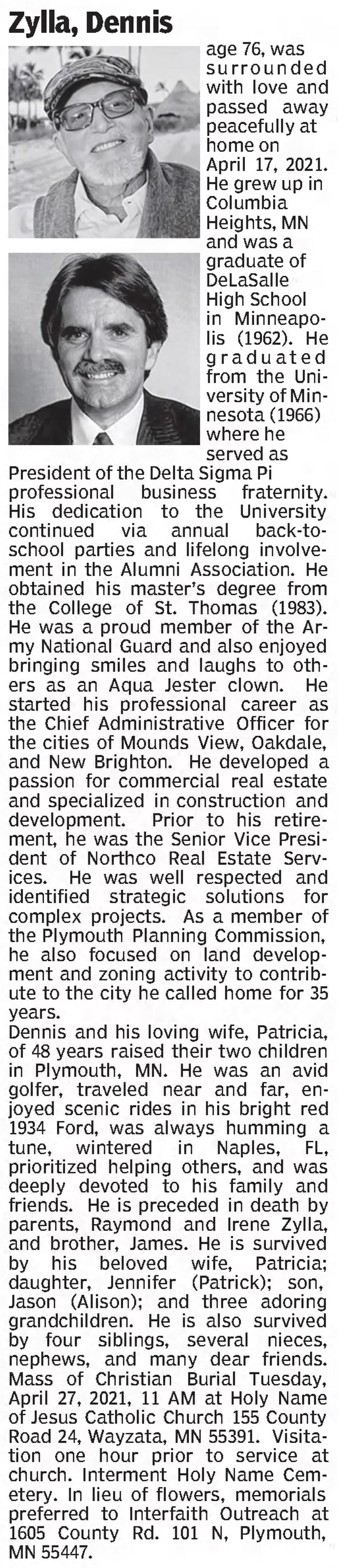- 1950 Census - Minneapolis, Hennepin Co, MN (Listed as Dennis S., age 5, son of Raymond J. Zylla)