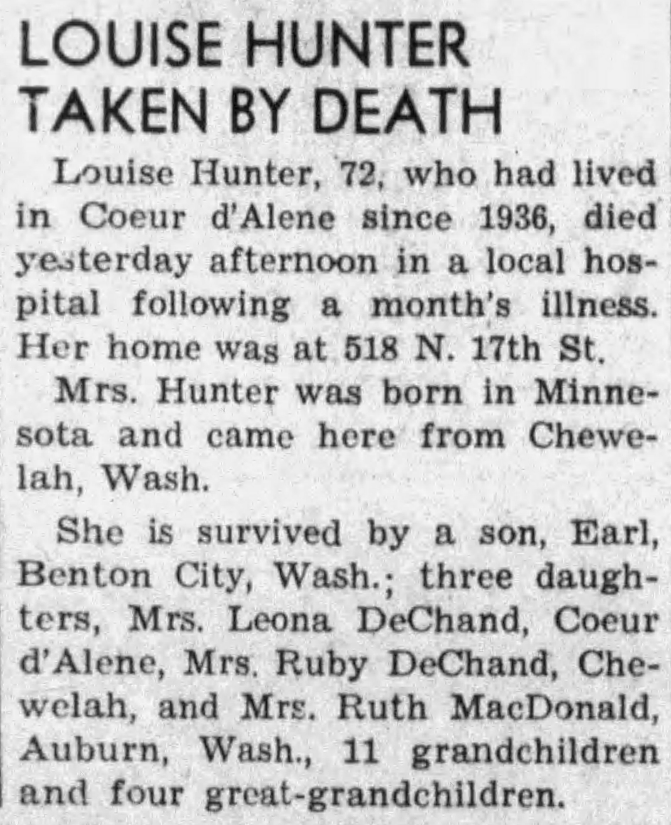 | Died: | March 12, 1958 in Coeur D'Alene, Kootenai Co, ID. View Obituary |