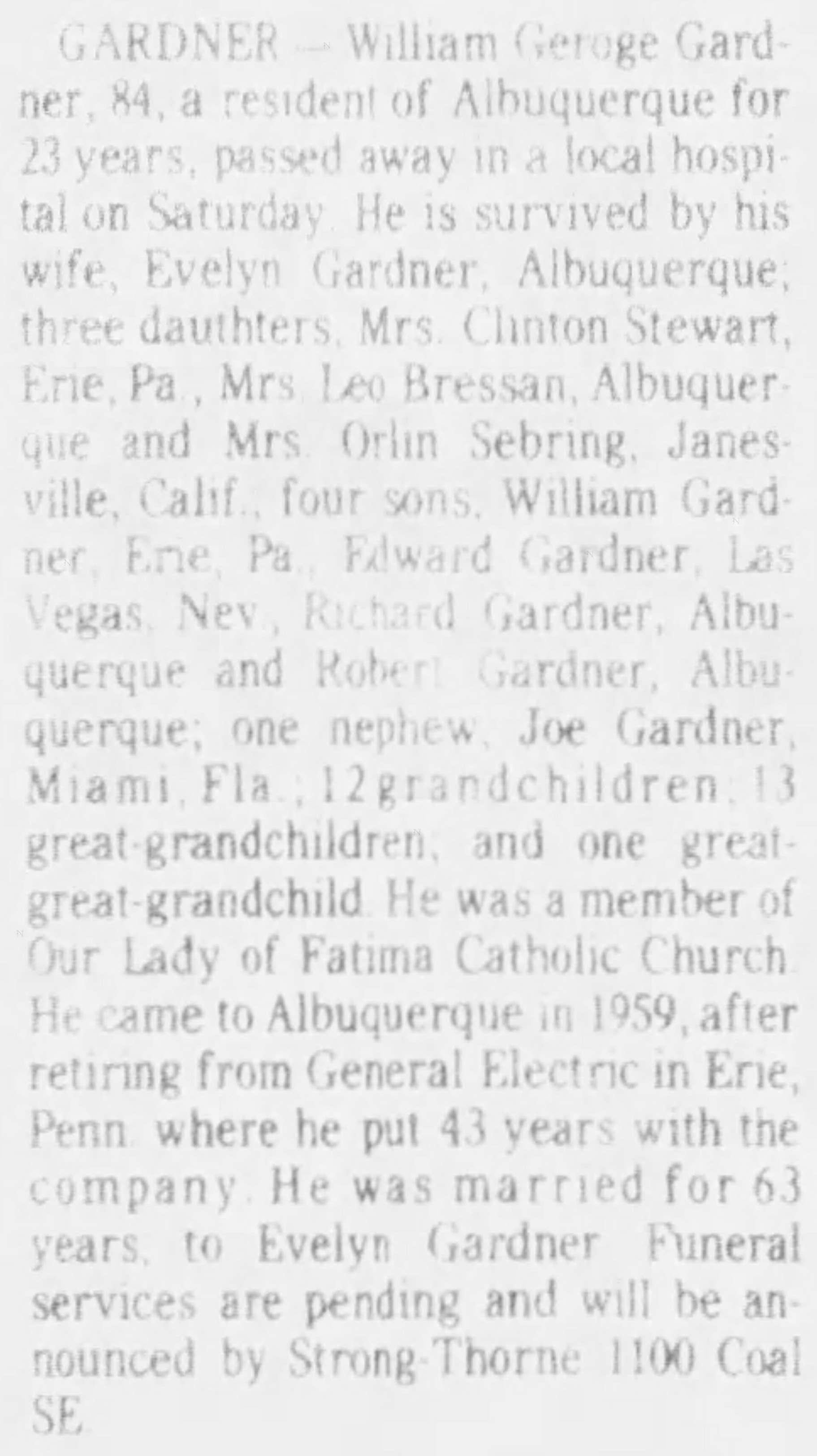 | Died: | July 31, 1994 in Bernalillo County, NM. View Obituary |