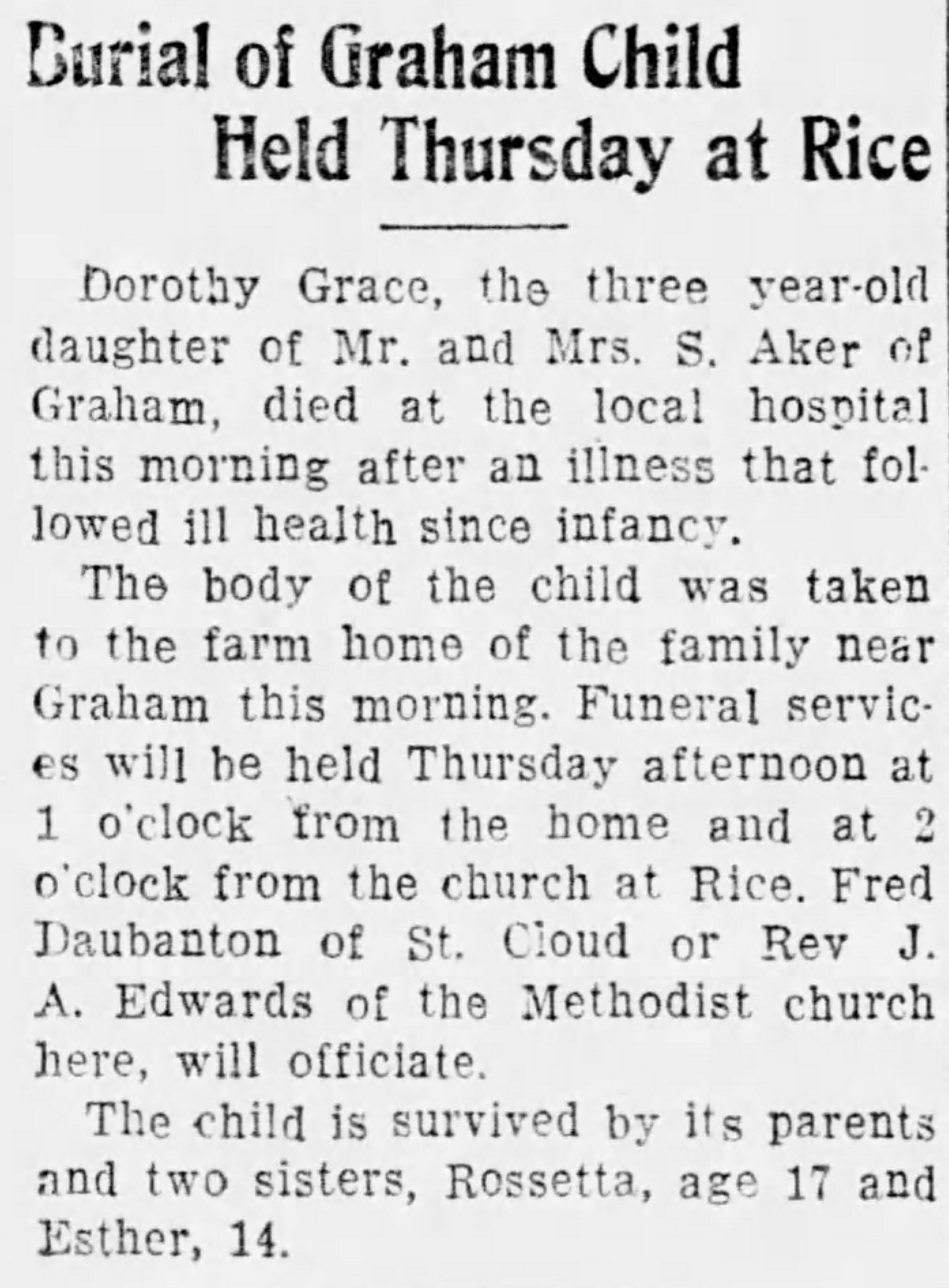 | Buried: | Rice Cemetery, Rice, Benton Co, MN. |