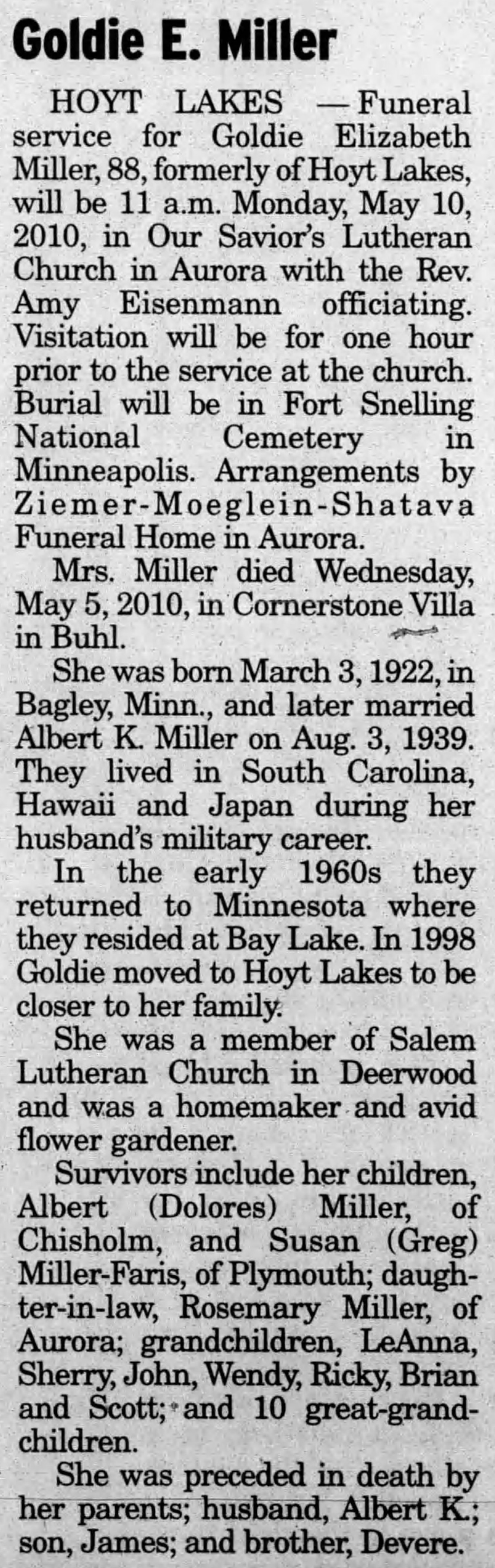 | Buried: | Fort Snelling National Cemetery, Minneapolis, Hennepin Co, MN. |