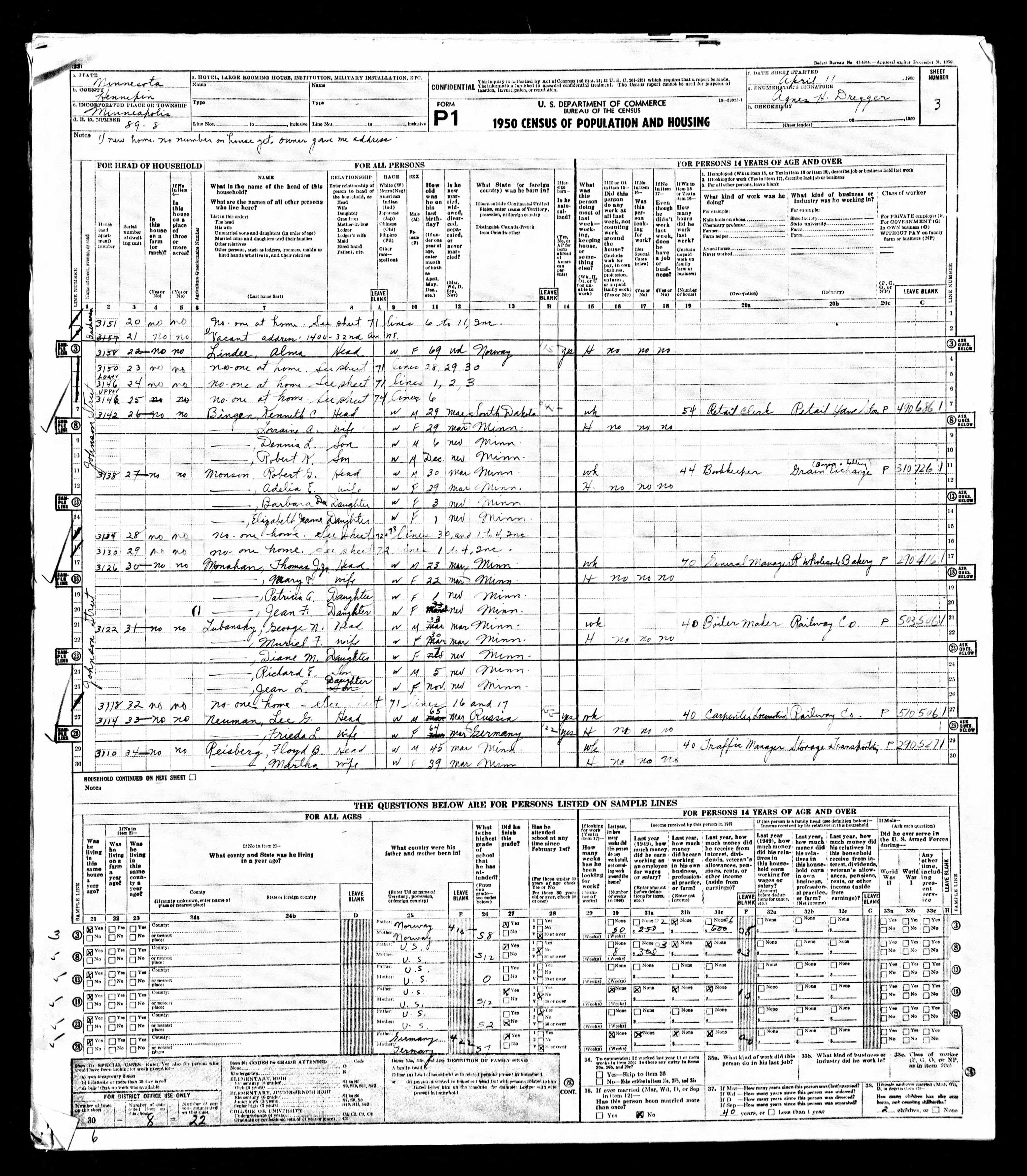 - 1950 Census - Minneapolis, Hennepin Co, MN (Listed as Murial T., age 30, wife of George N. Lubansky)