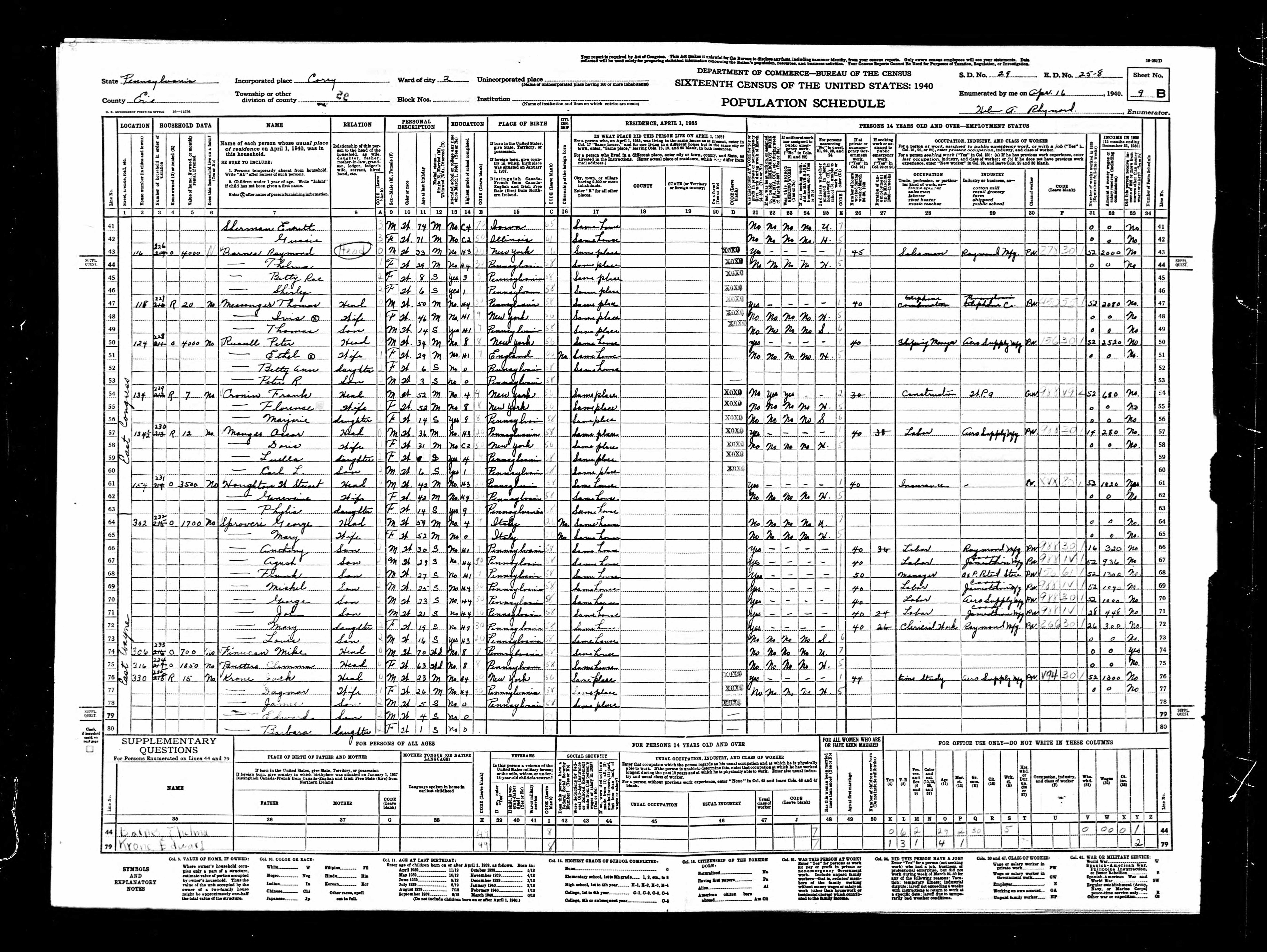 - 1940 Census - Corry, Erie Co, PA (Listed as Ivis, age 46, wife of Thomas Messenger)