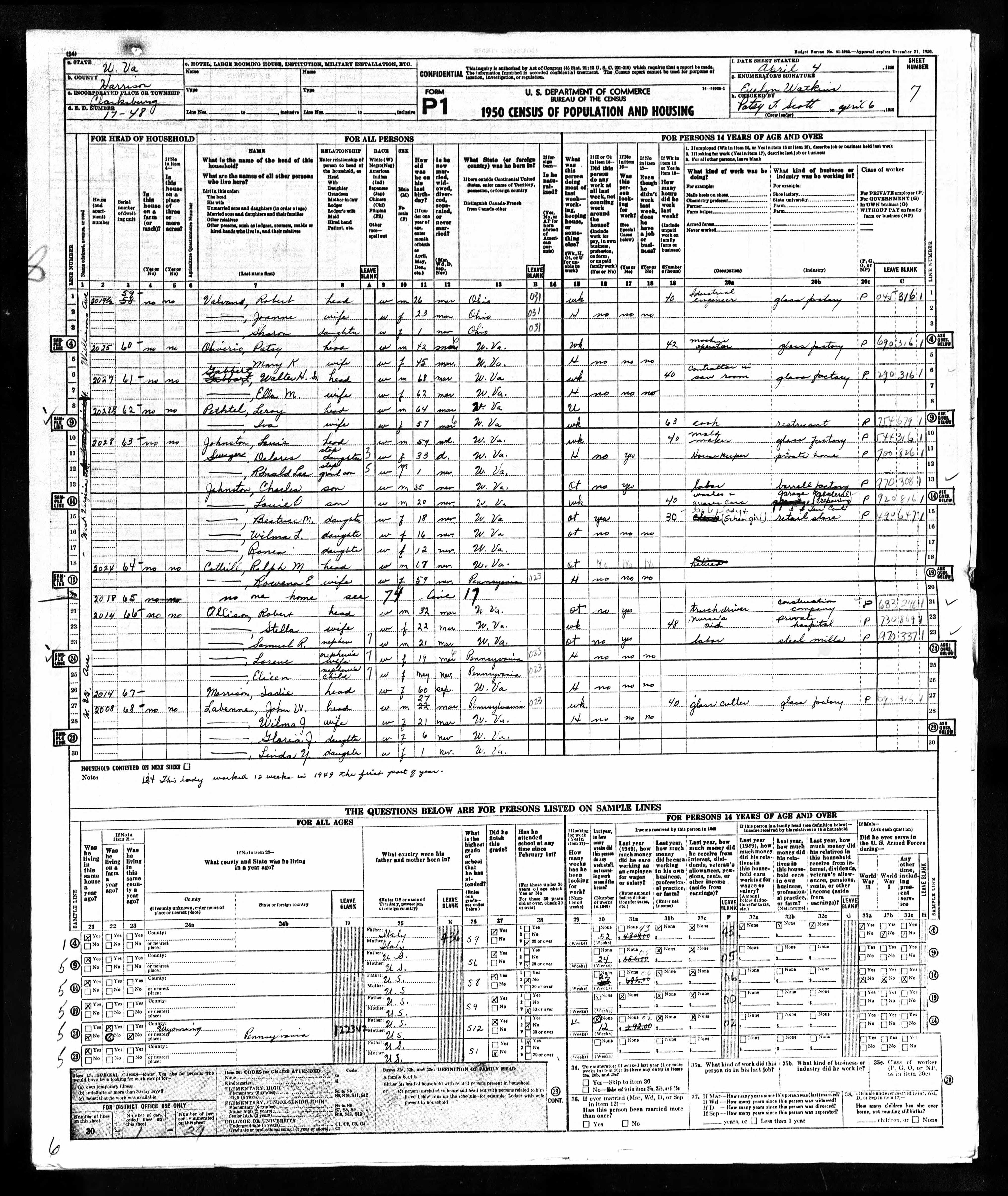 - 1950 Census - Clarksburg, Harrison Co, WV (Listed as Rowena E., age 59, wife of Ralph M. Cottrill)