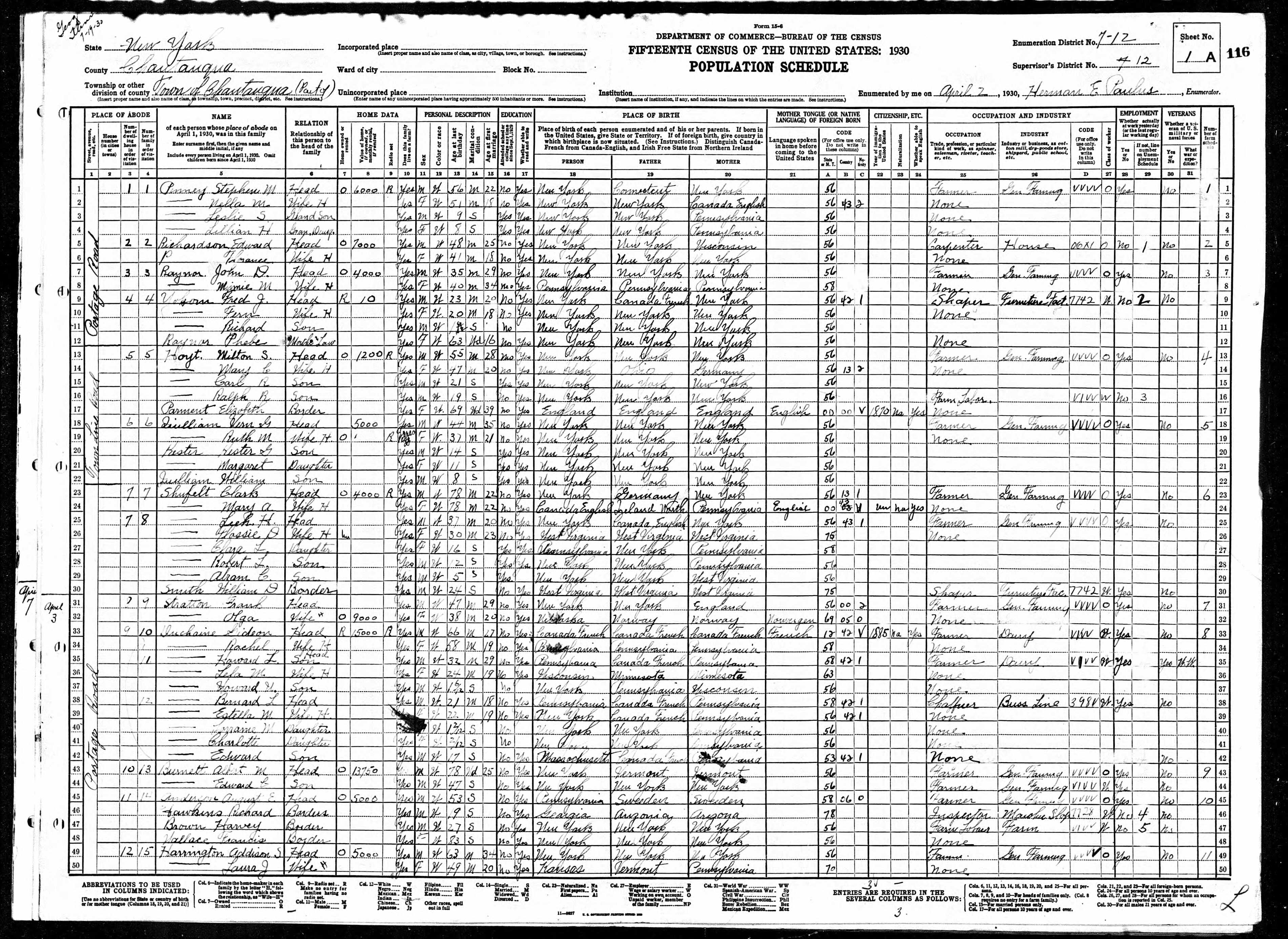 - 1950 Census - Westfield, Chautauqua Co, NY (Listed as Estella, age 43, wife of Bernard Duchaine)