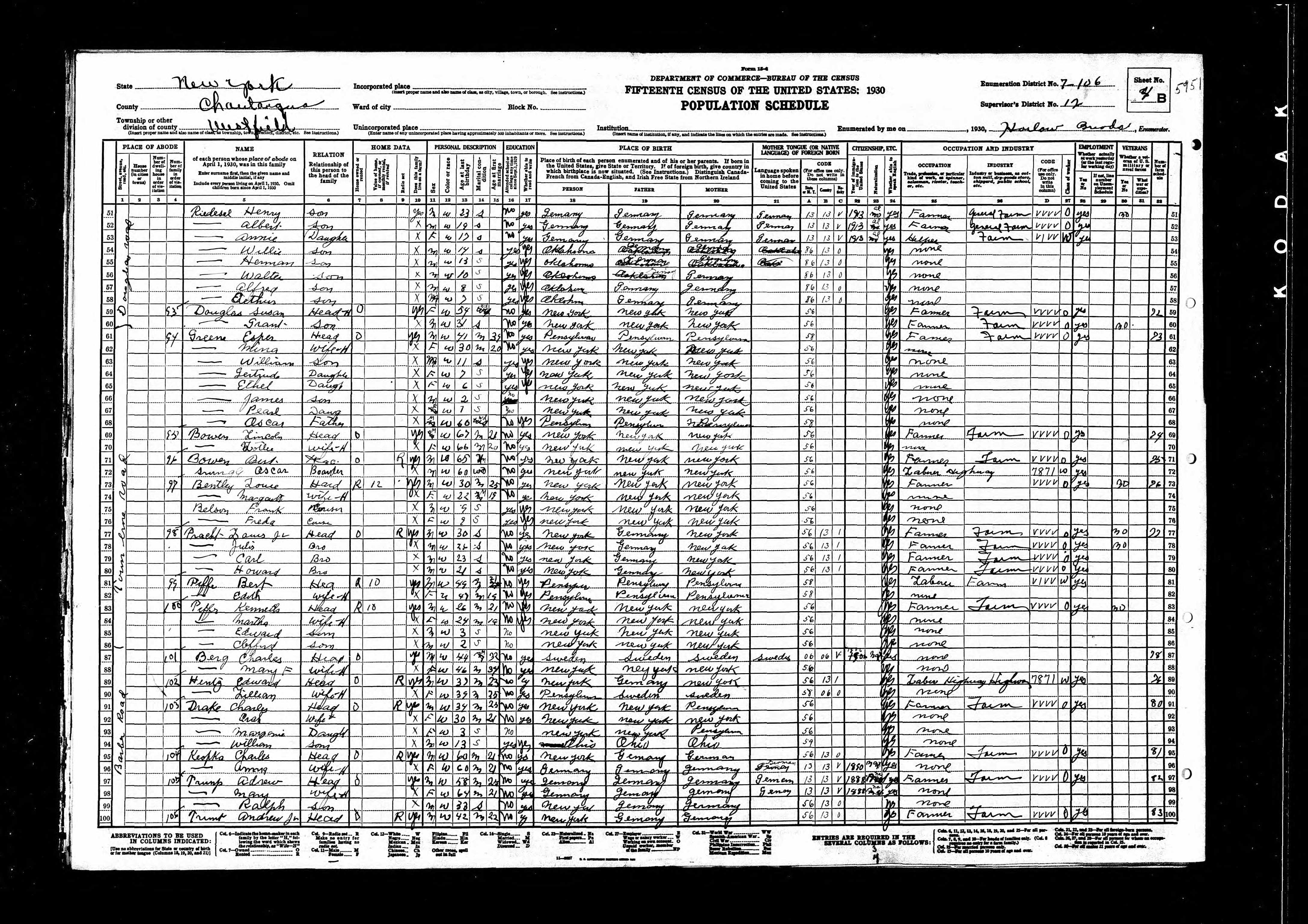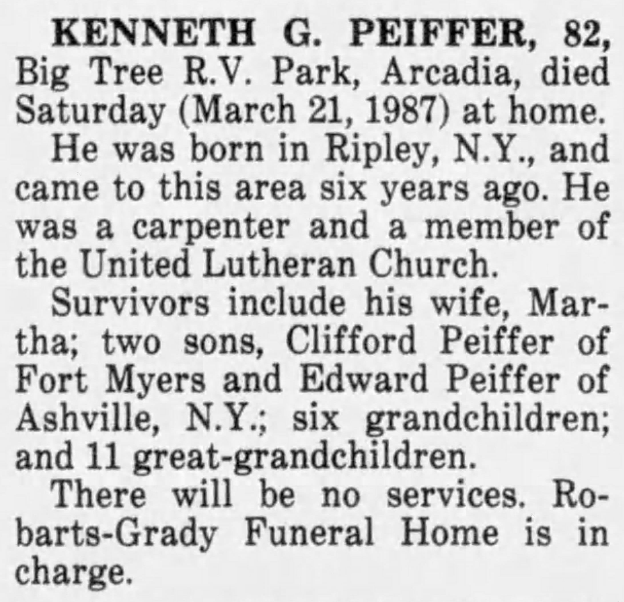 - 1950 Census - Busti Township, Chautauqua Co, NY (Listed as Kenneth G. Peiffer, age 46, head of household)