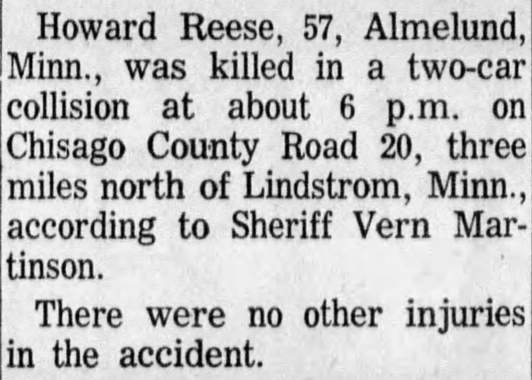 - 1950 Census - Amador Township, Chisago Co, MN (Listed as Howard L. Reese, age 36, head of household)