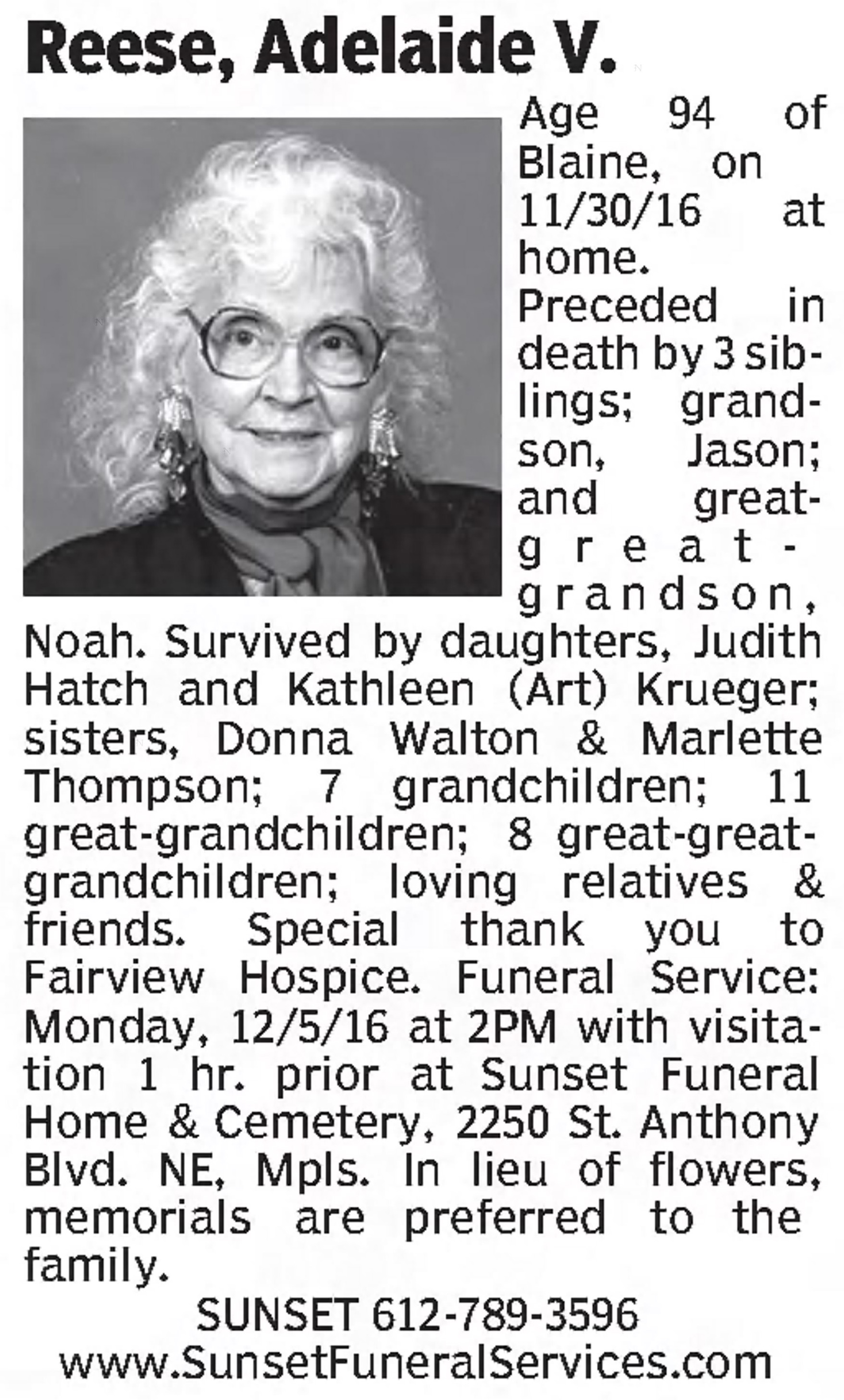 | Died: | November 30, 2016 in Blaine, Anoka Co, MN. View Obituary |