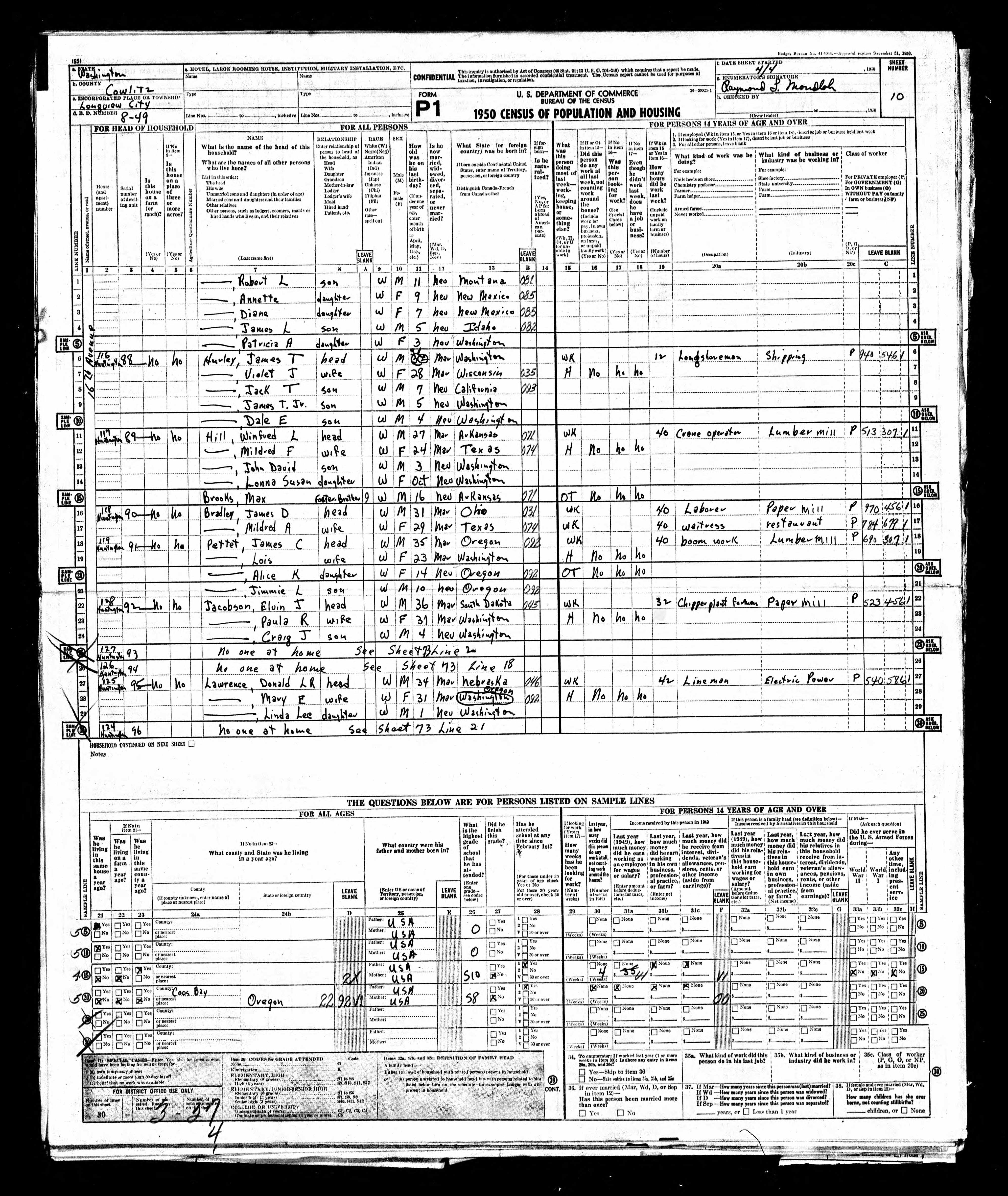 - 1950 Census - Longview, Cowlitz Co, WA (Household continued)