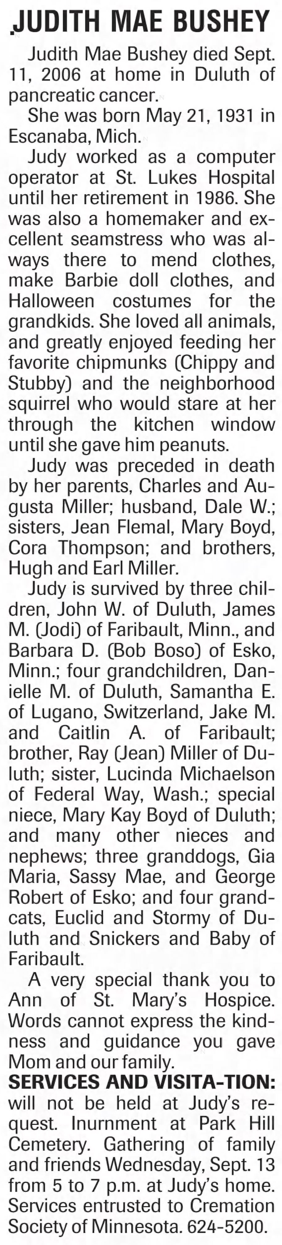 | Died: | September 11, 2006 in Duluth, St. Louis Co, MN. View Obituary |