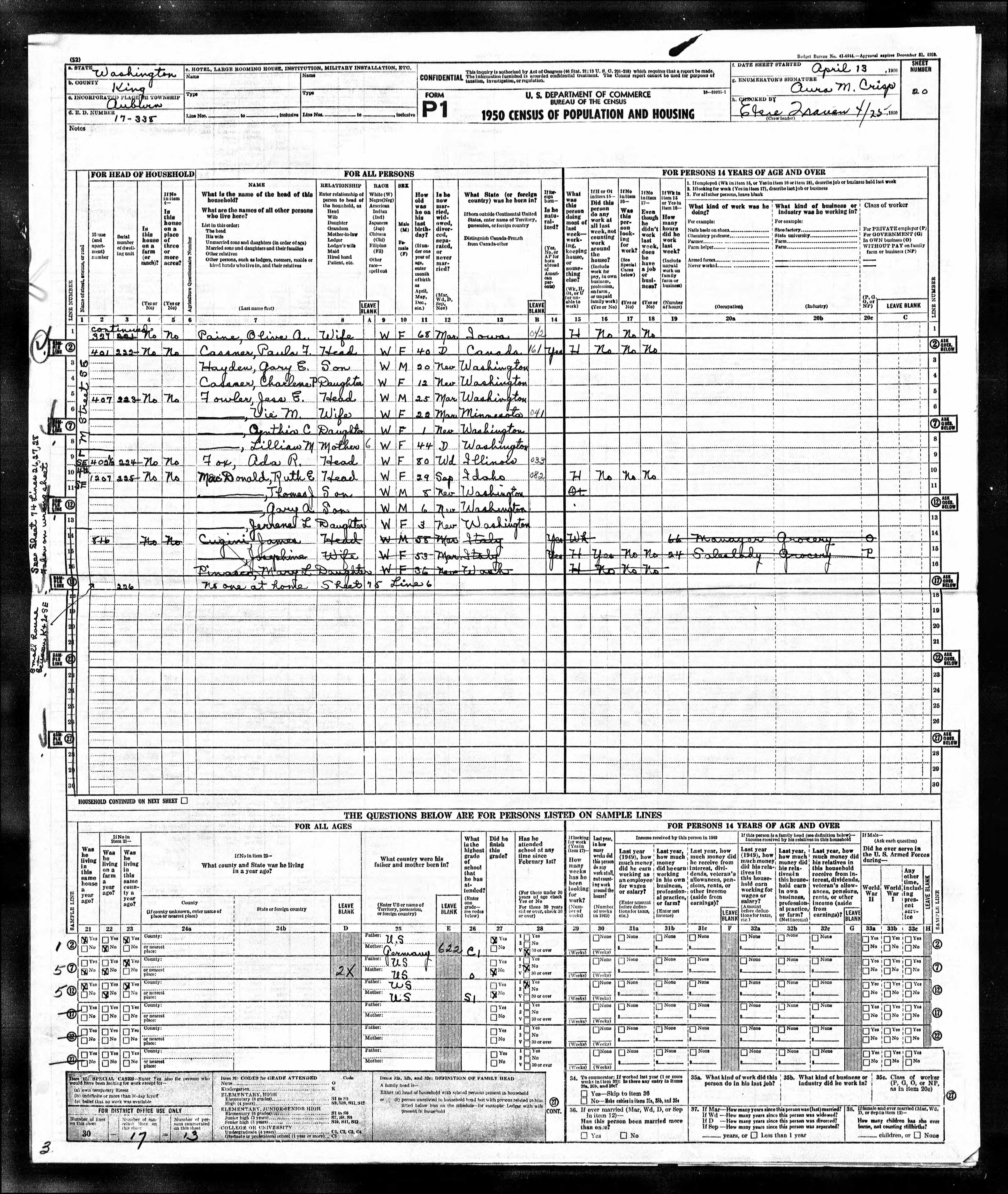 - 1950 Census - Auburn, King Co, WA (Listed as Ruth E. MacDonald, age 29, head of household)
