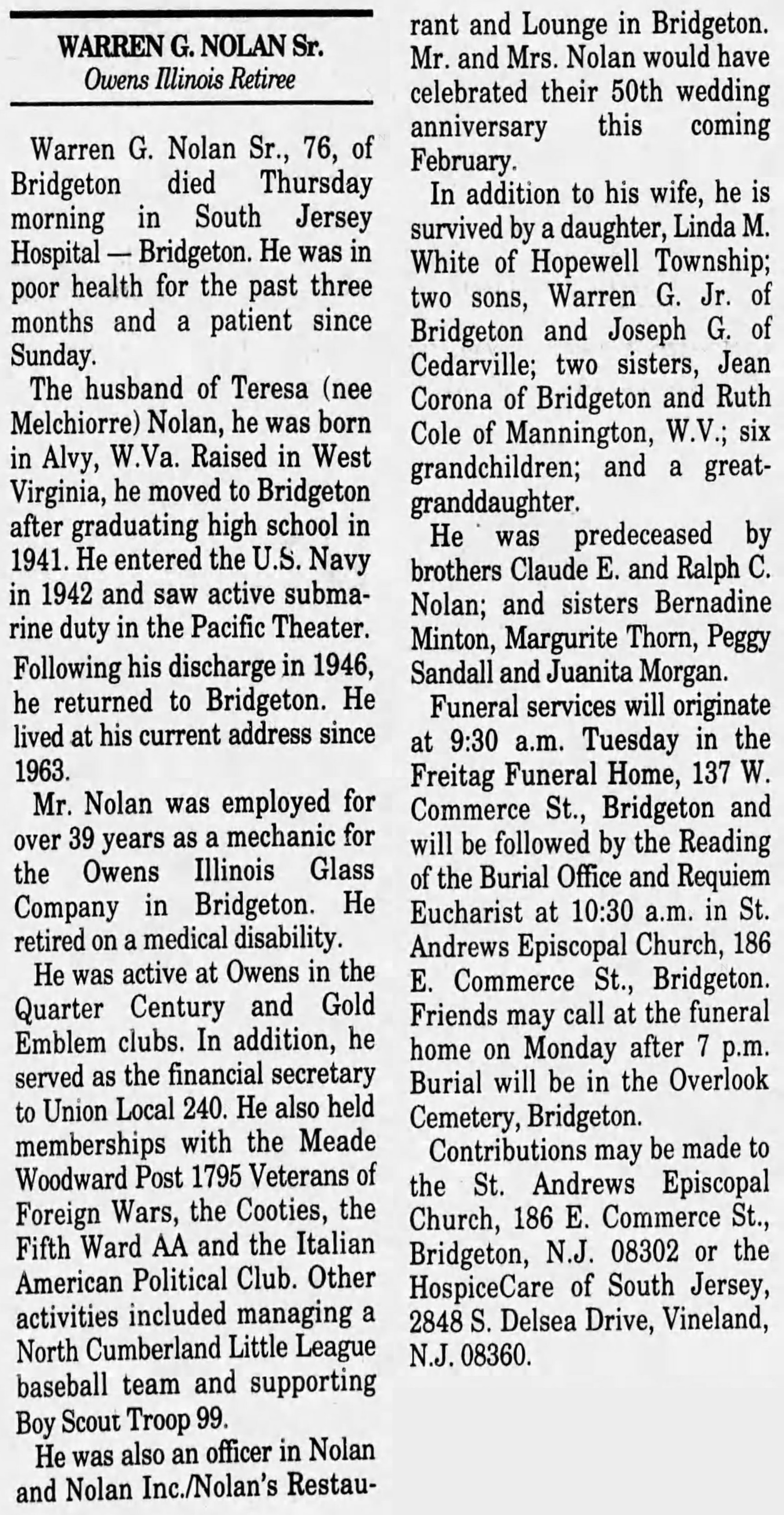 | Died: | June 12, 1997 in Bridgeton, Cumberland Co, NJ. View Obituary |