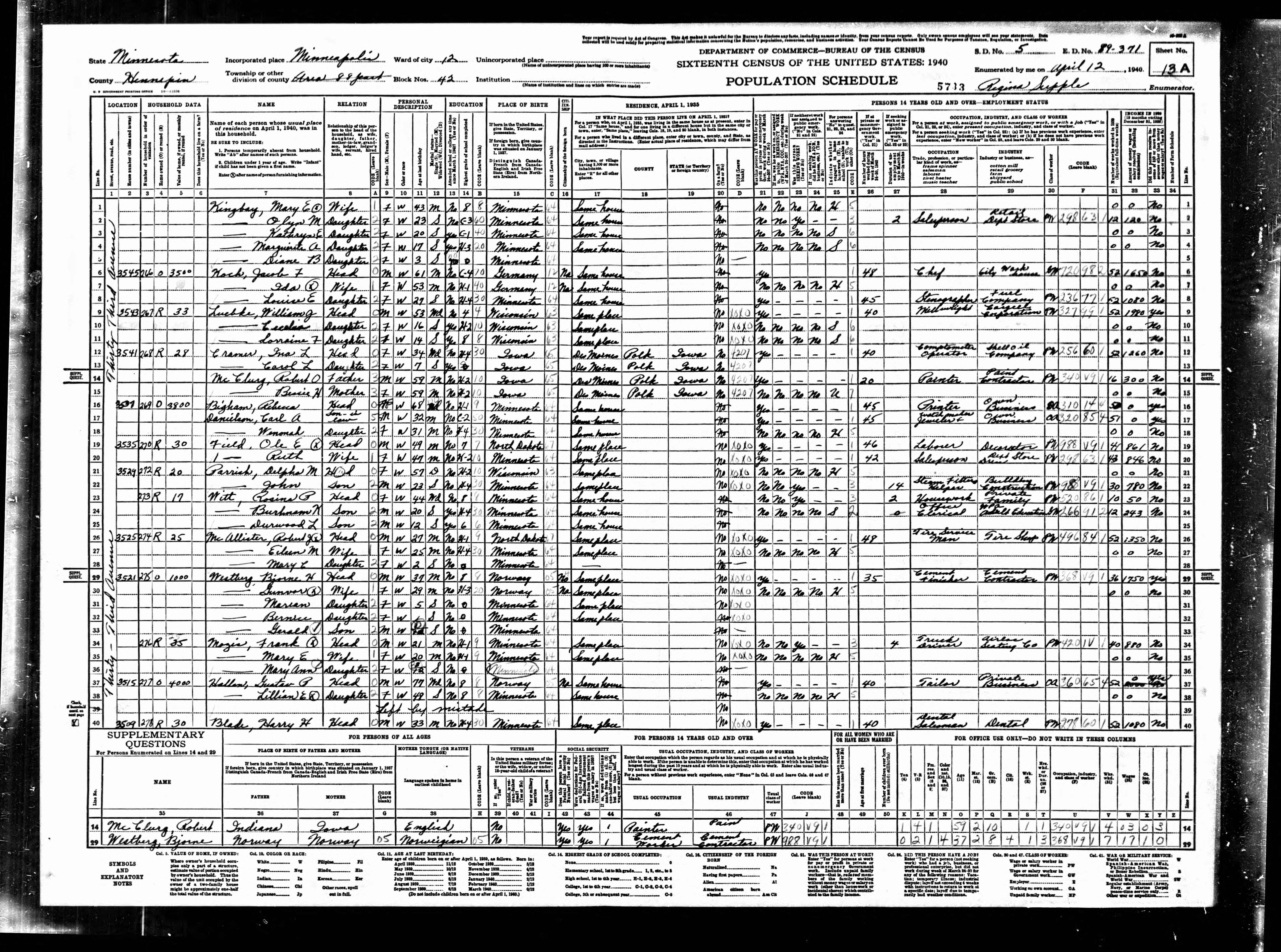 - 1940 Census - Minneapolis, Hennepin Co, MN (Listed as John, age 23, son of Delpha M. Parrish)