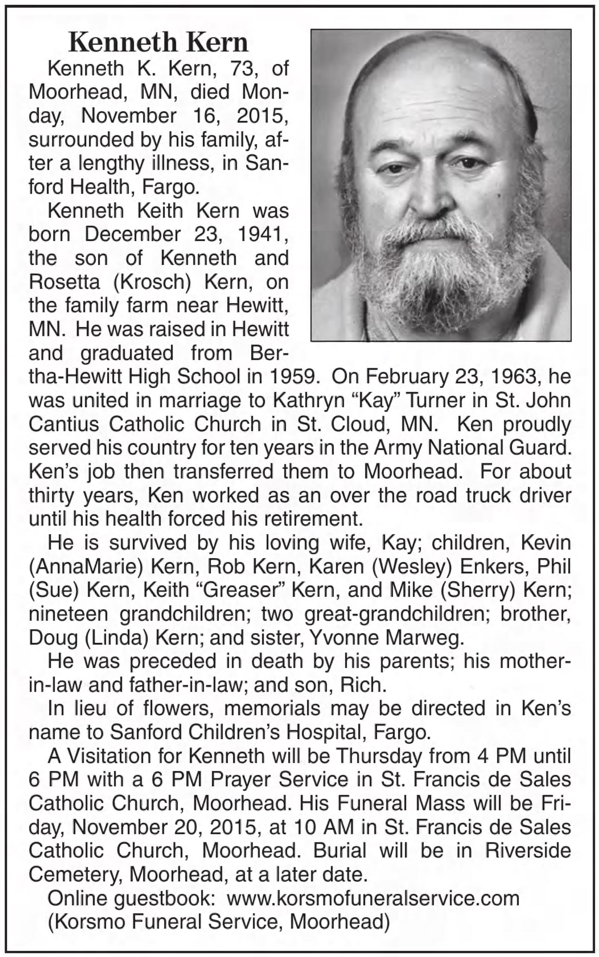 Kathryn married Kenneth Keith Kern on February 23, 1963 in St. Cloud, Stearns Co, MN.