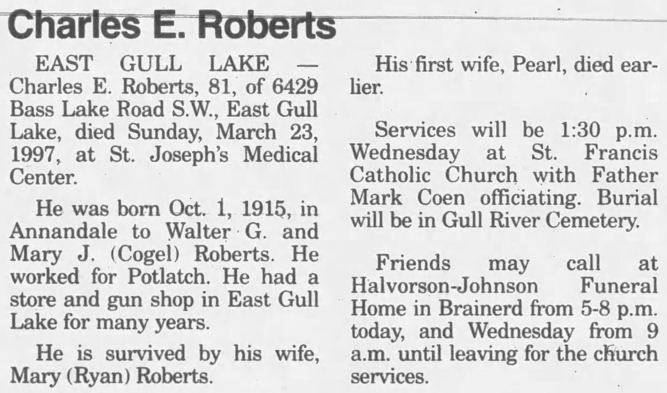 | Died: | March 23, 1997 in Brainerd, Crow Wing Co, MN. View Obituary |