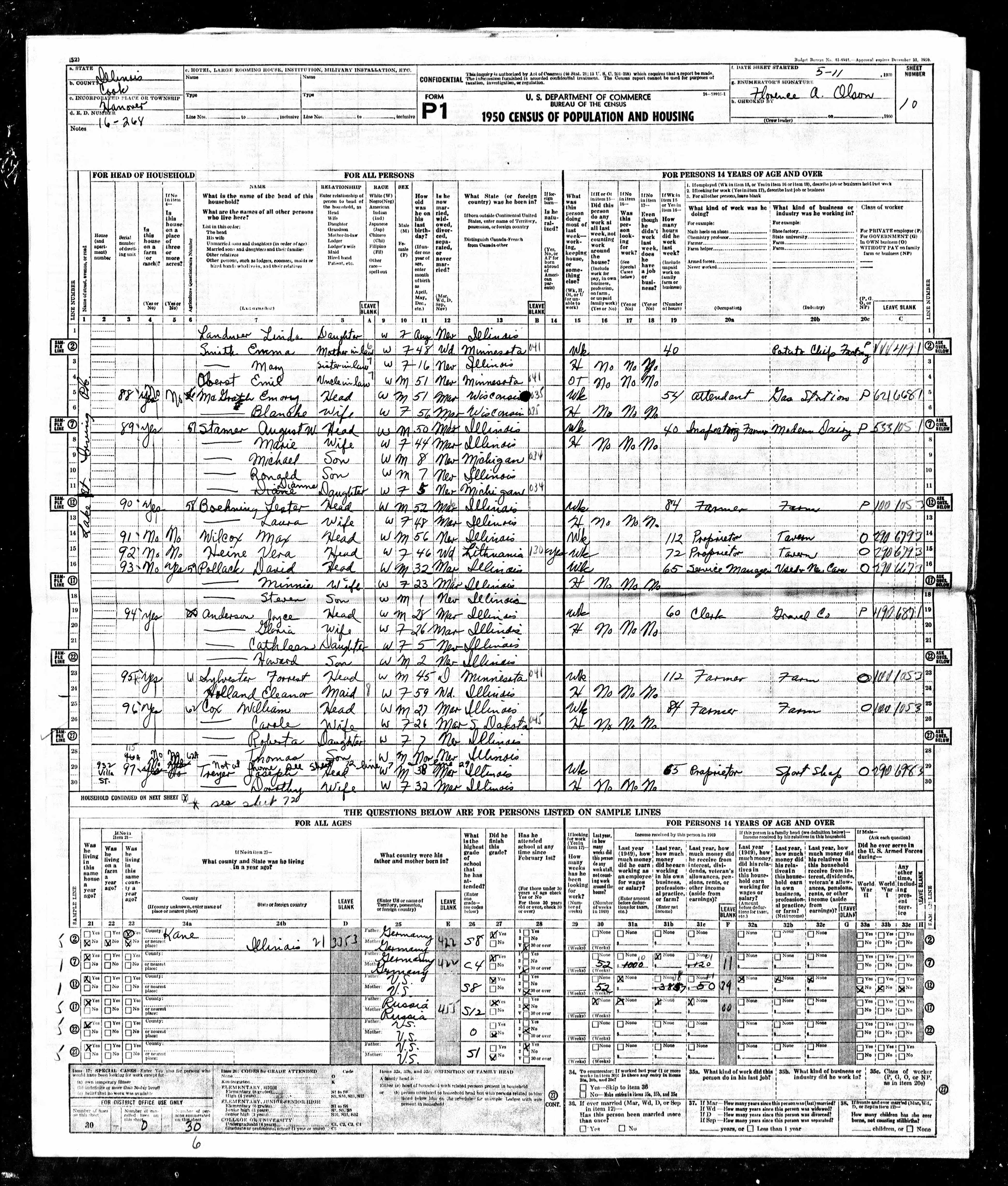 - 1950 Census - Hanover, Cook Co, IL (Listed as Forrest Sylvester, age 45, head of household)