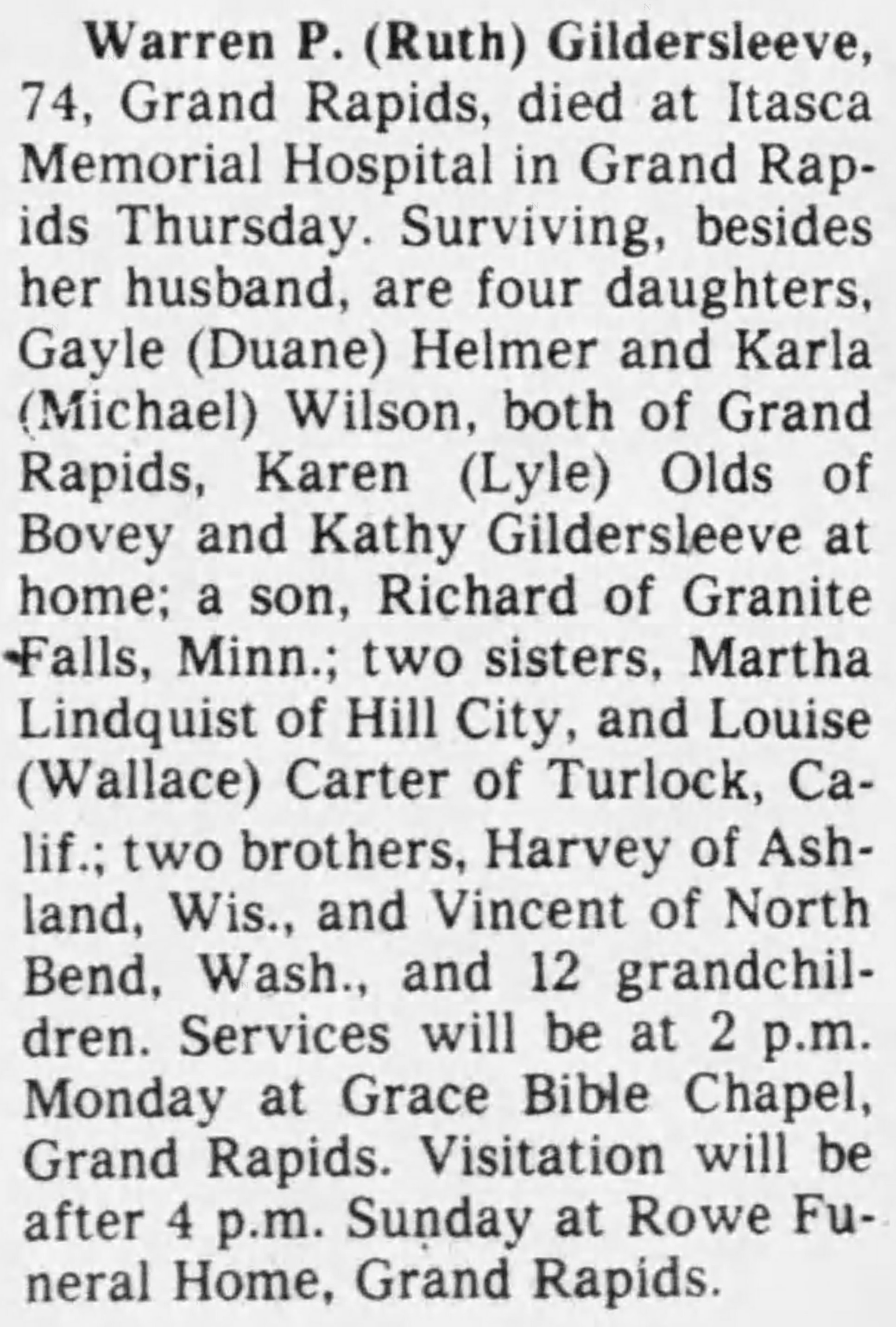 Ruth married Warren Paul Gildersleeve on September 7, 1954.