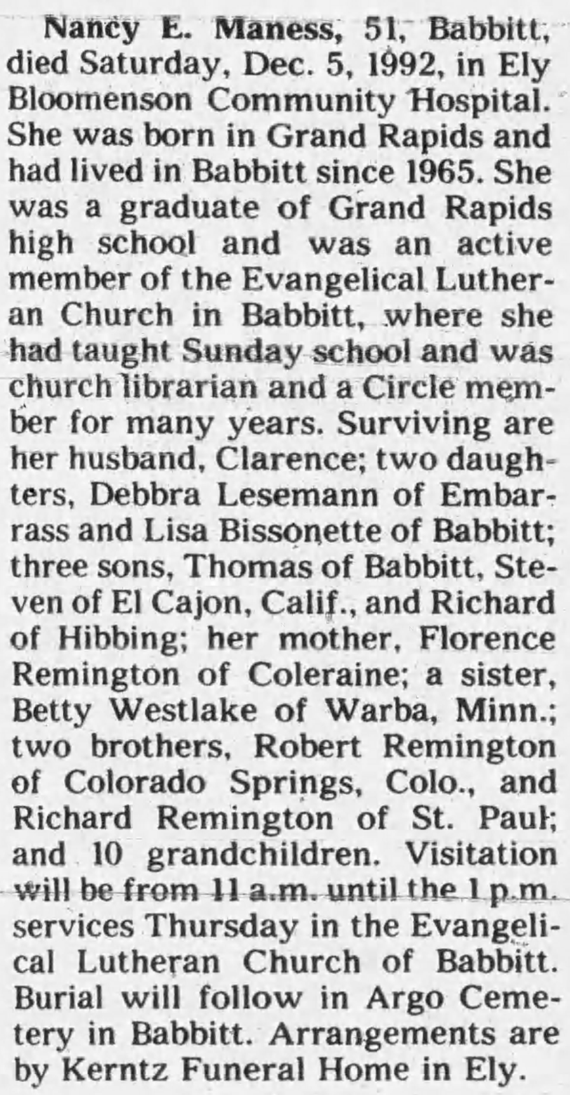 | Died: | December 5, 1992 in Ely, St. Louis Co, MN. View Obituary |