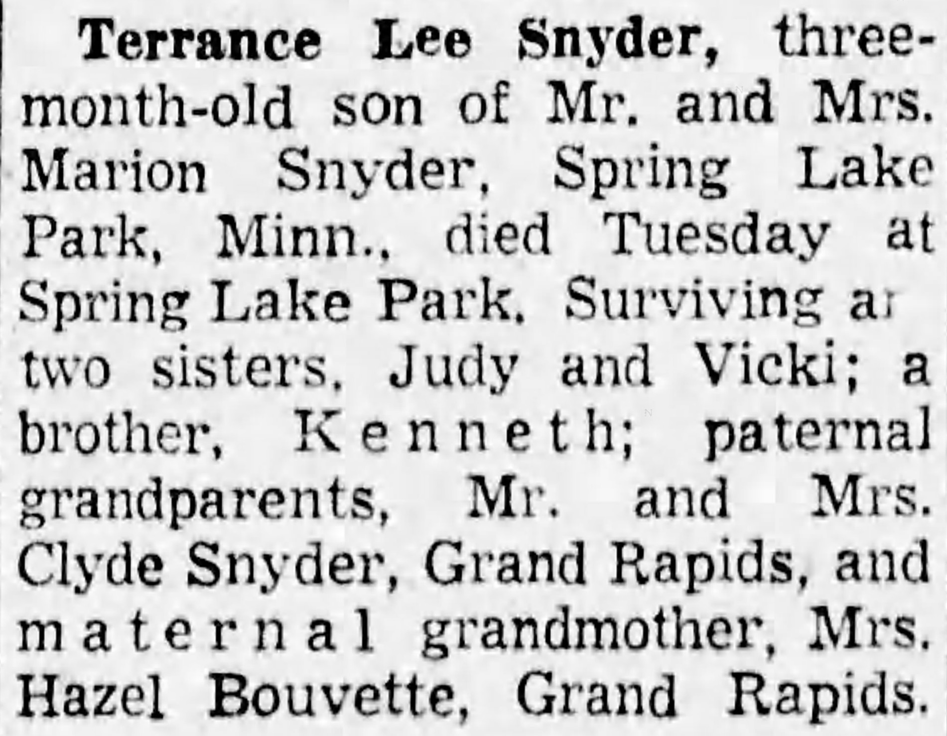 | Parents: | Marion Cecil Snyder and Marjorie Jane Dahline |