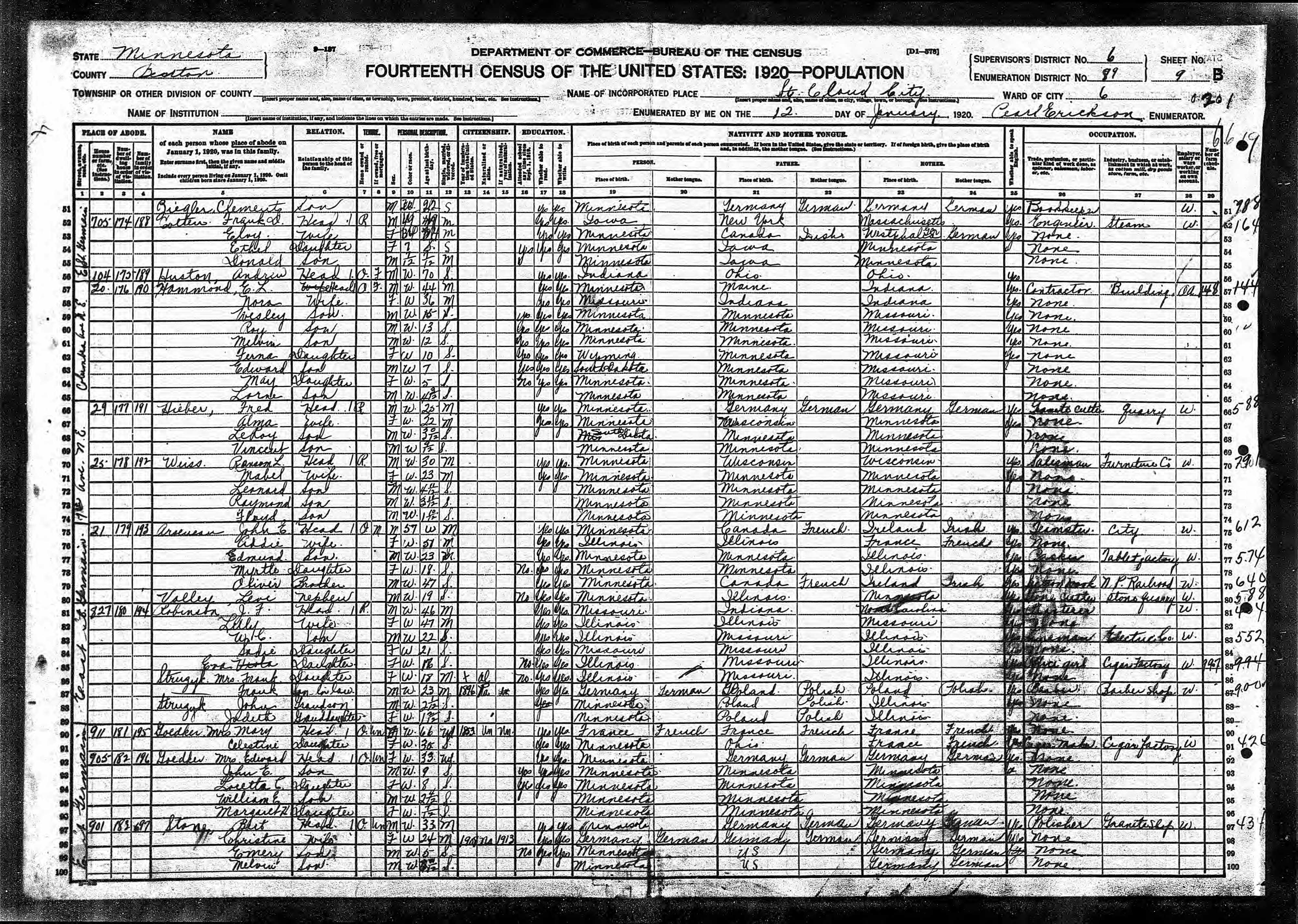 - 1920 Census - St. Cloud, Benton Co, MN (Listed as Mabel, age 23, wife of Ransom L. Weiss)