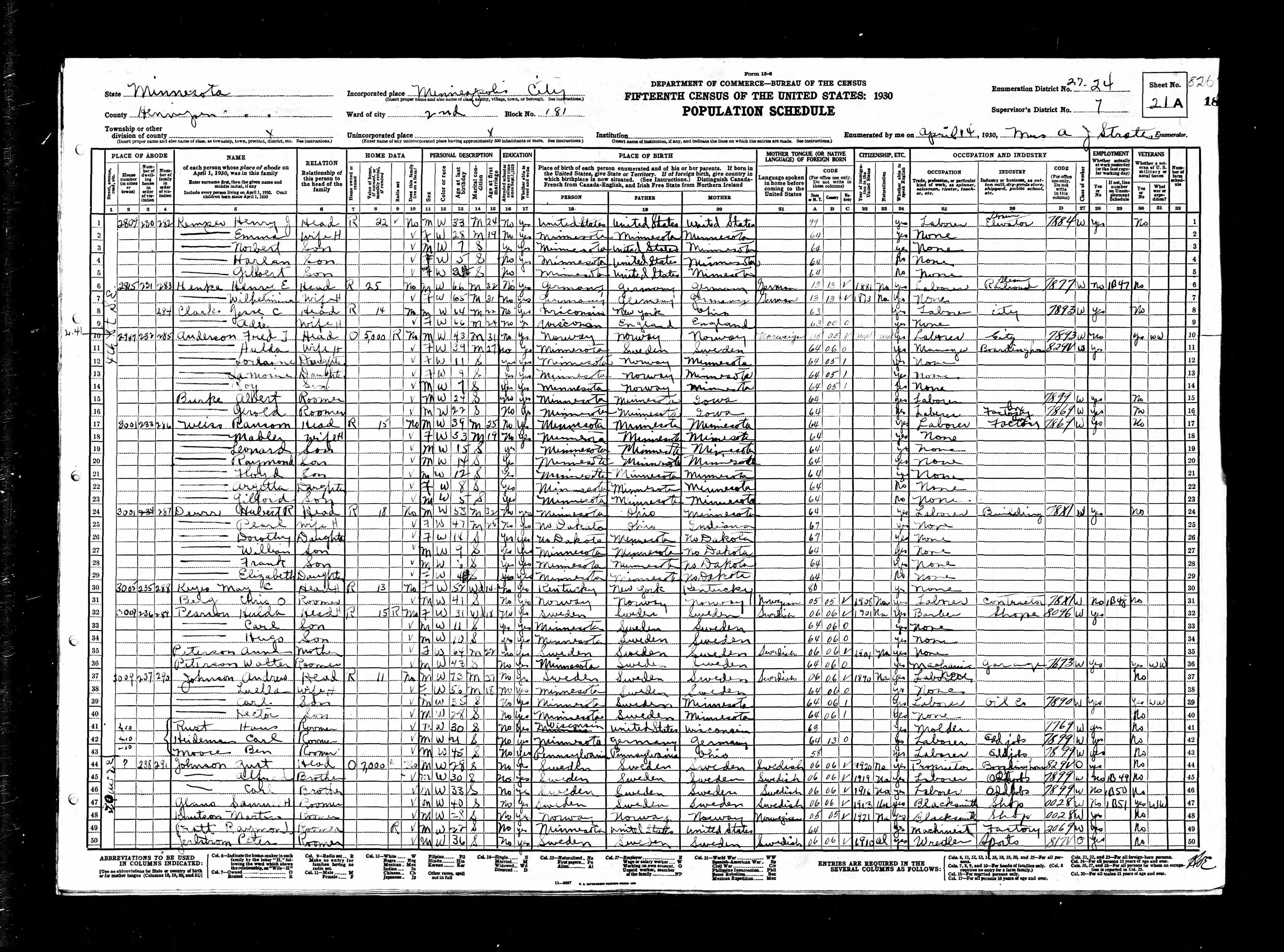 - 1930 Census - Minneapolis, Hennepin Co, MN (Listed as Mabel, age 33, wife of Ransom Weiss)