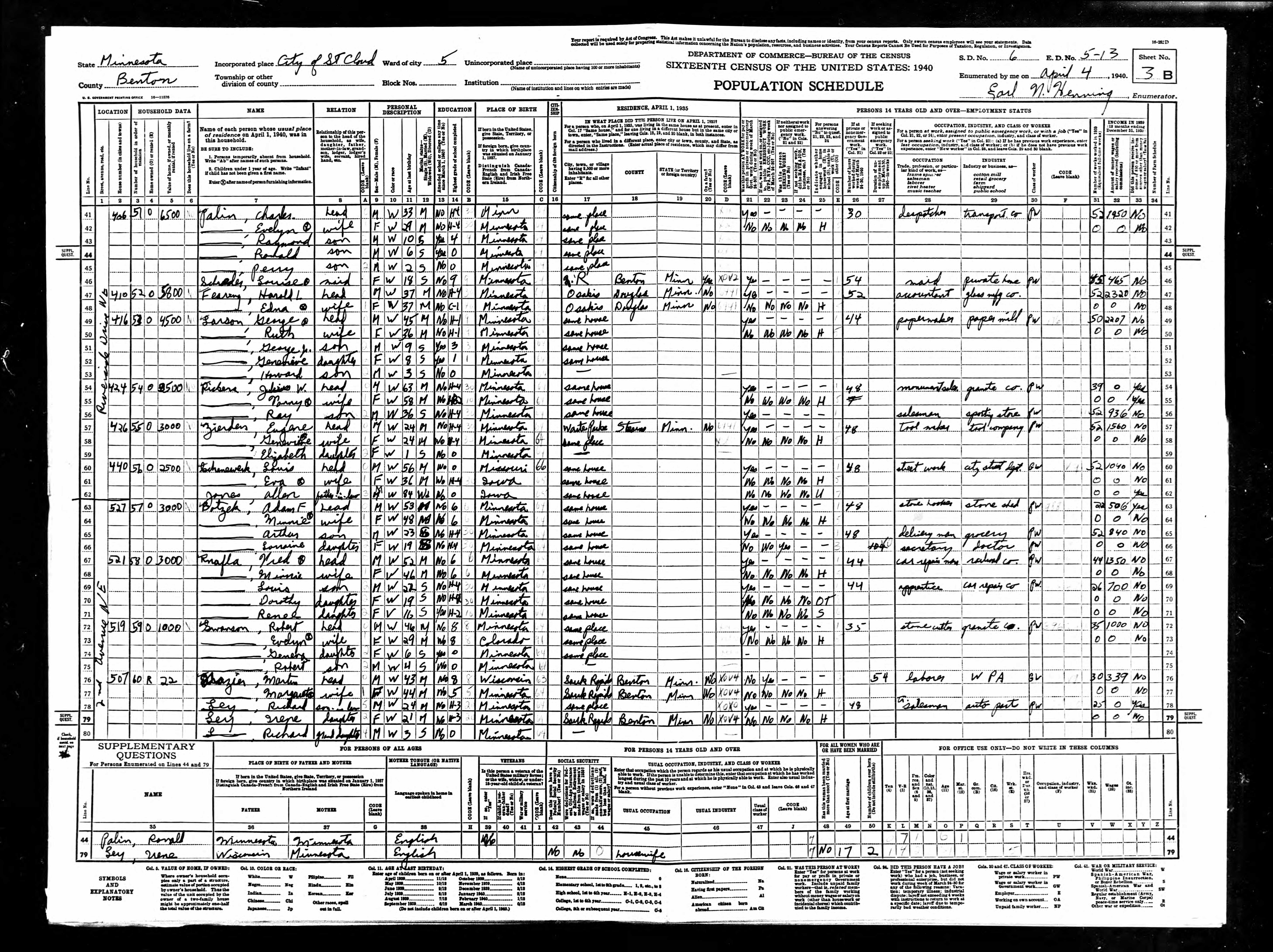 - 1940 Census - St. Cloud, Benton Co, MN (Listed as Margaret, age 44, wife of Martin Frazier)