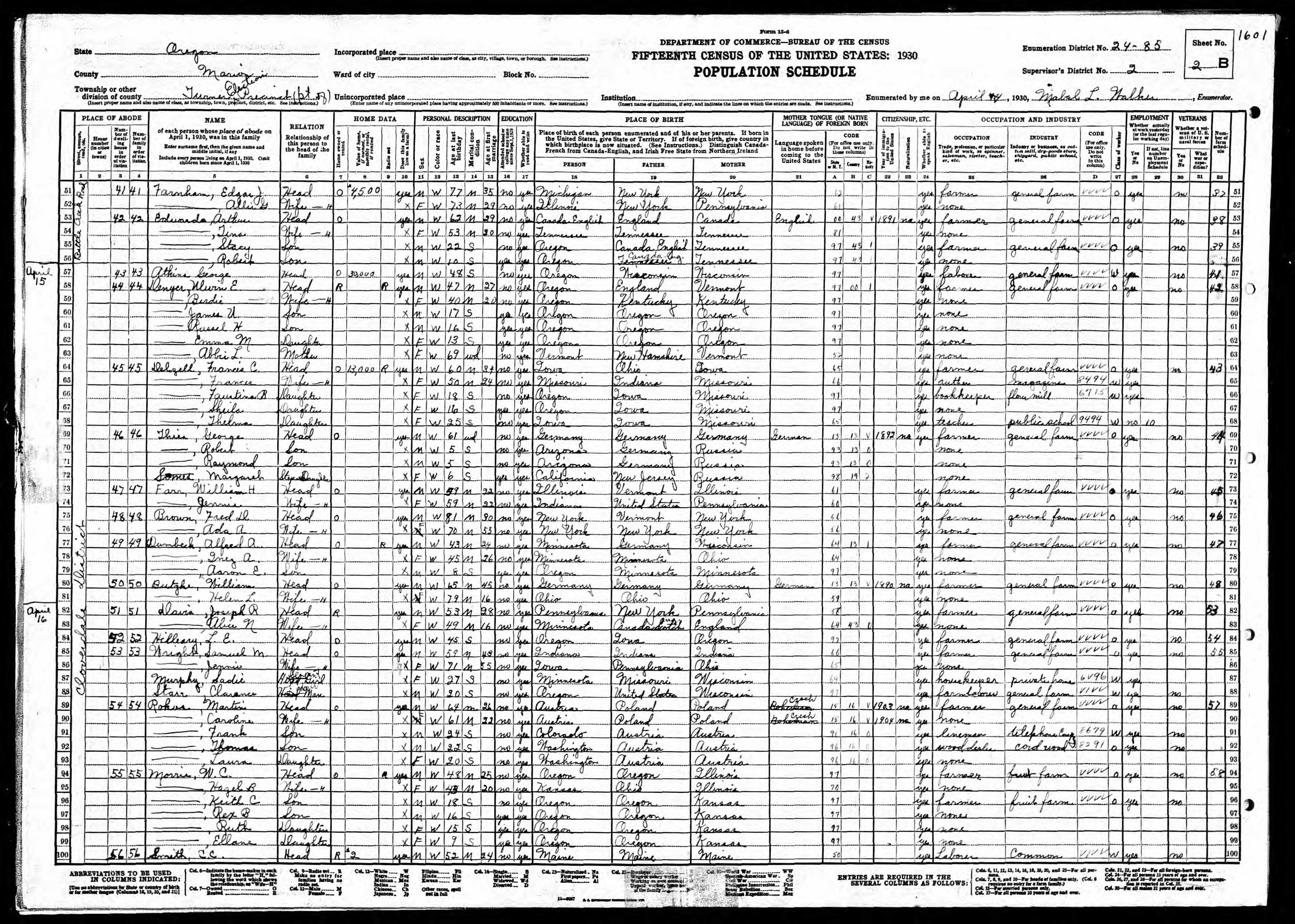 - 1930 Census - Turner, Marion Co, OR (Listed as Sadie Murphy, age 27, servant of Samuel M. Wright)