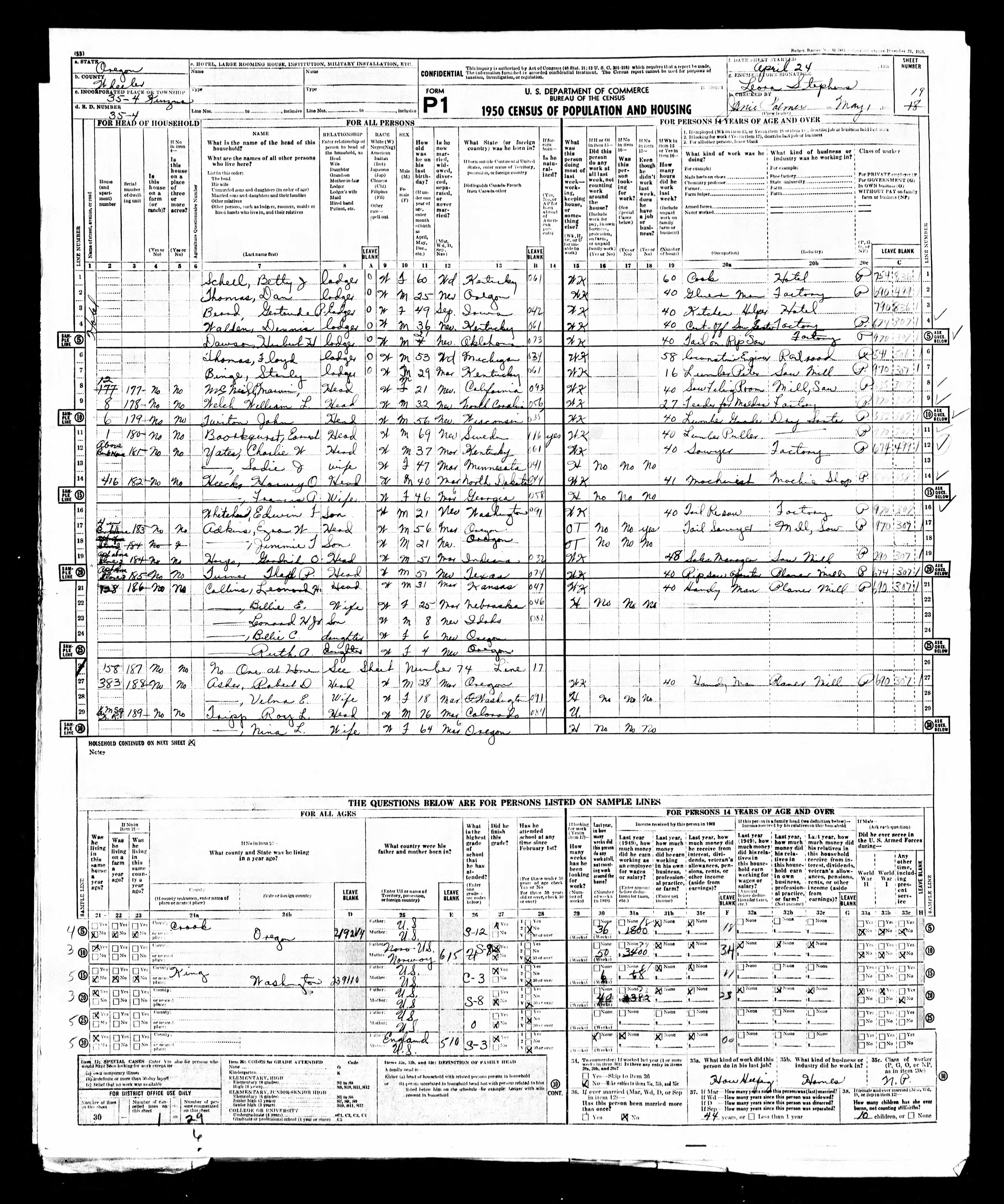 - 1950 Census - Kinzua, Wheeler Co, OR (Listed as Sadie J., age 47, wife of Charlie W. Yates)