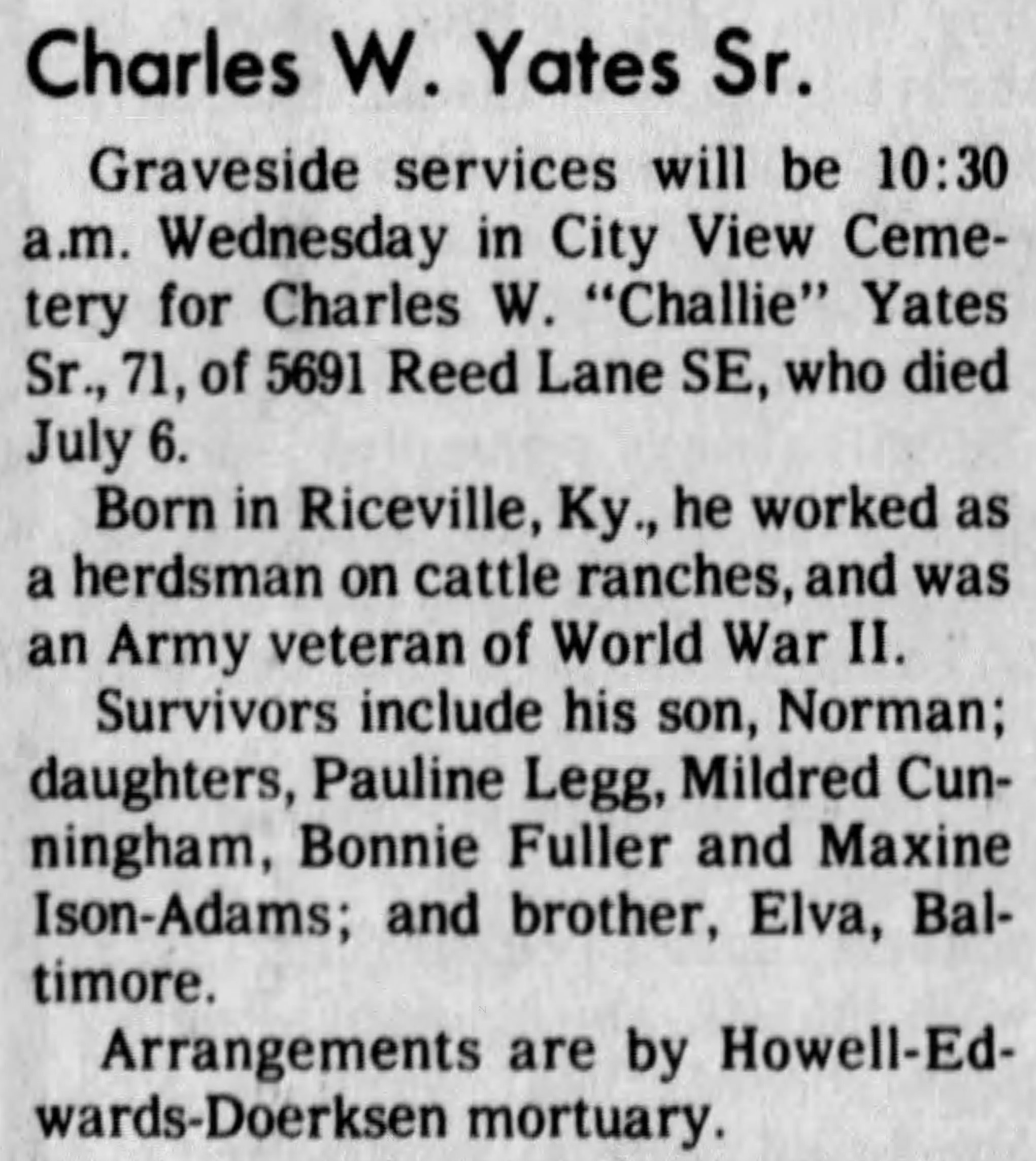 | Parents: | James Haskel Yates and Caldonia Williams |