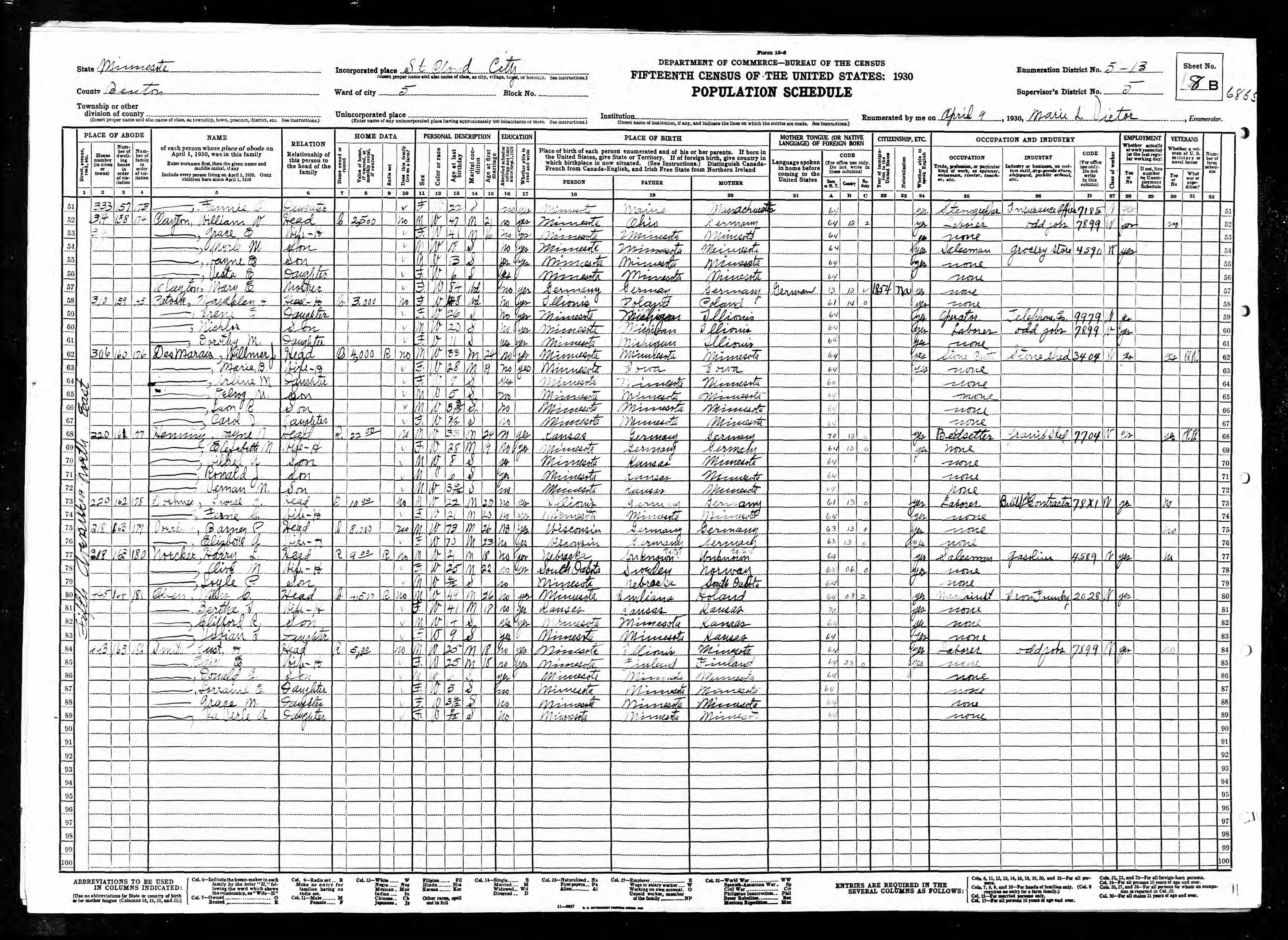 - 1930 Census - St. Cloud, Benton Co, MN (Listed as Gust H. Smith, age 25, head of household)