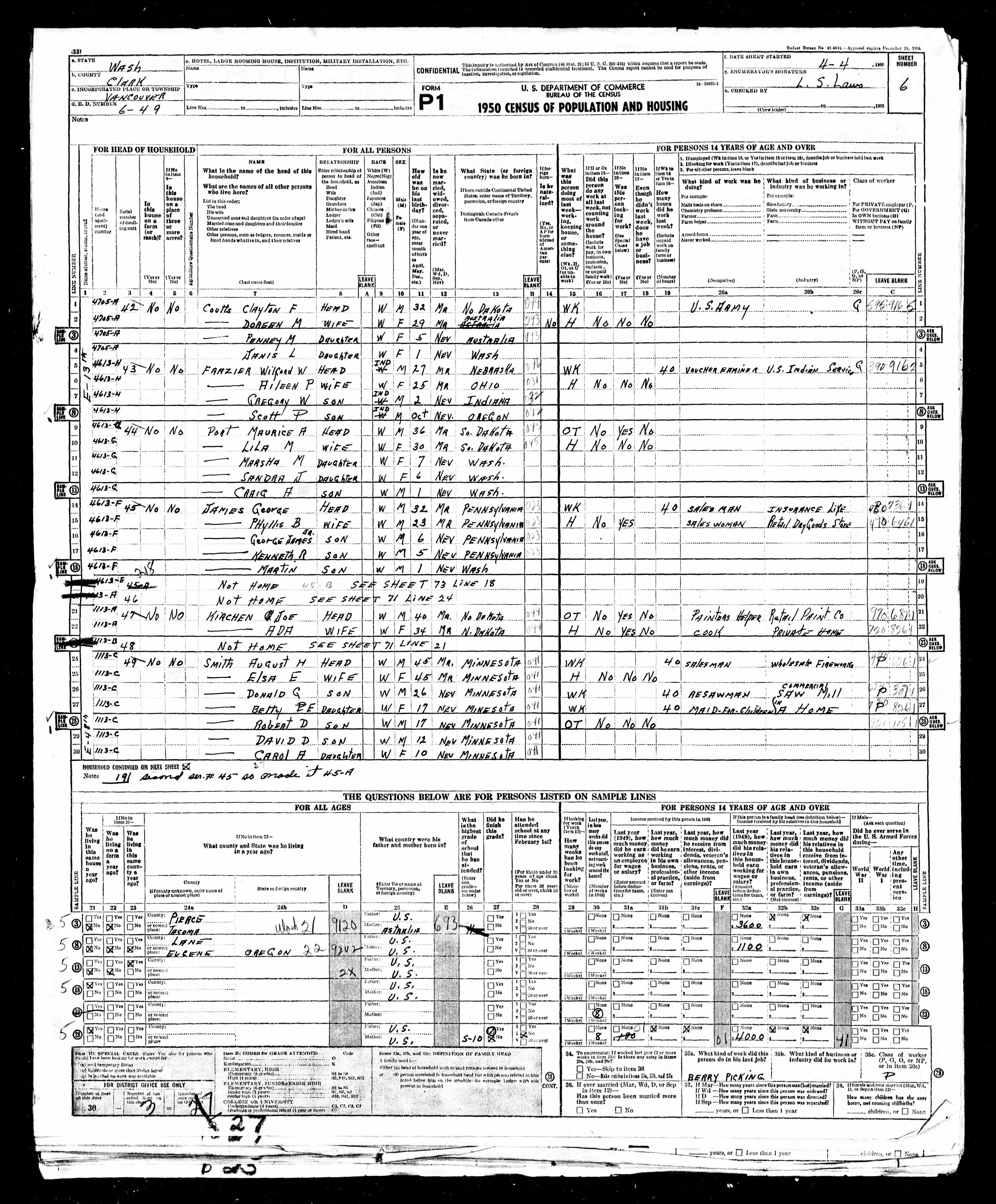 - 1950 Census - Vancouver, Clark Co, WA (Household continued)