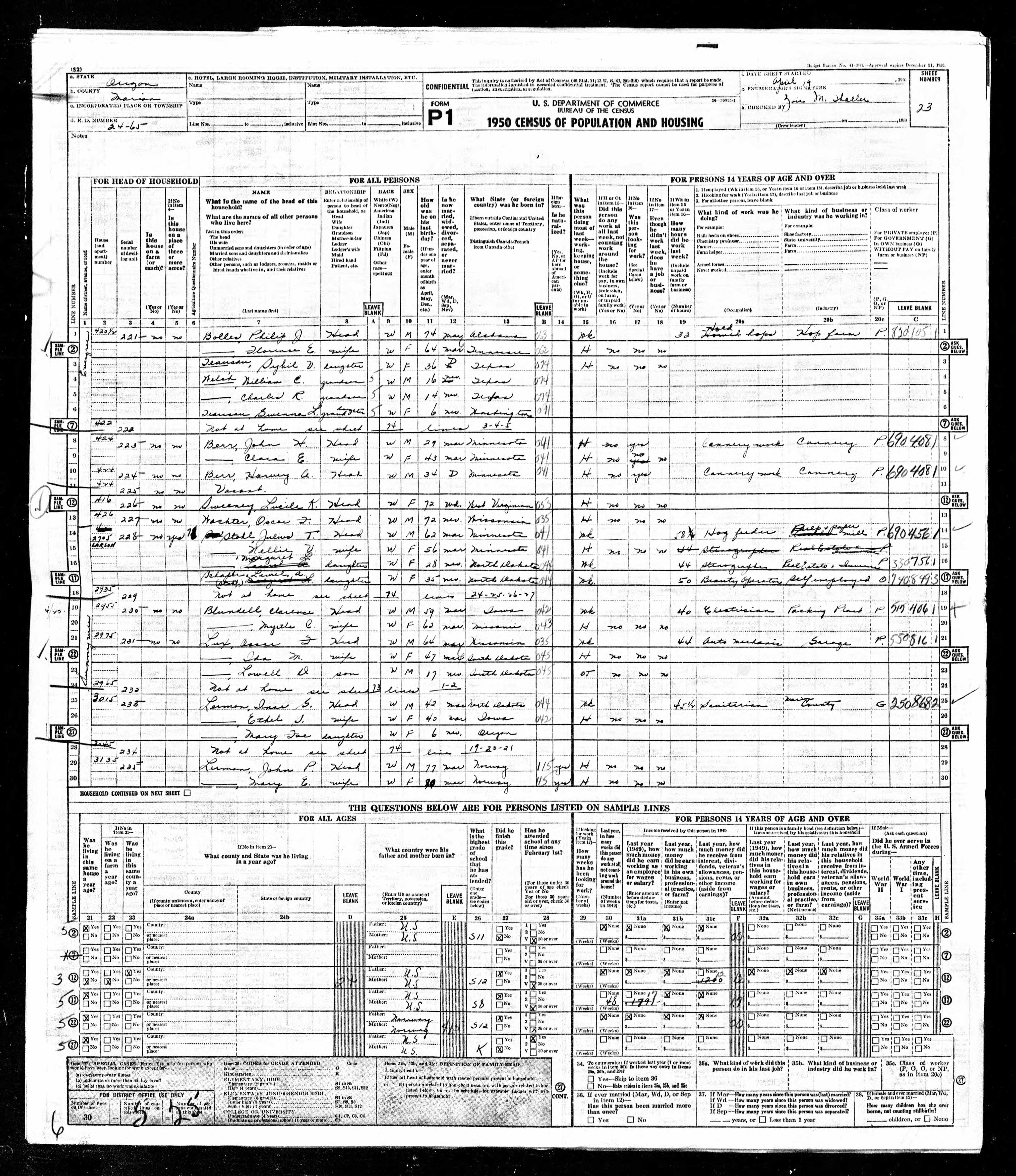 - 1950 Census - Hayesville, Marion Co, OR (Listed as Clara E., age 43, wife of John H. Berr)