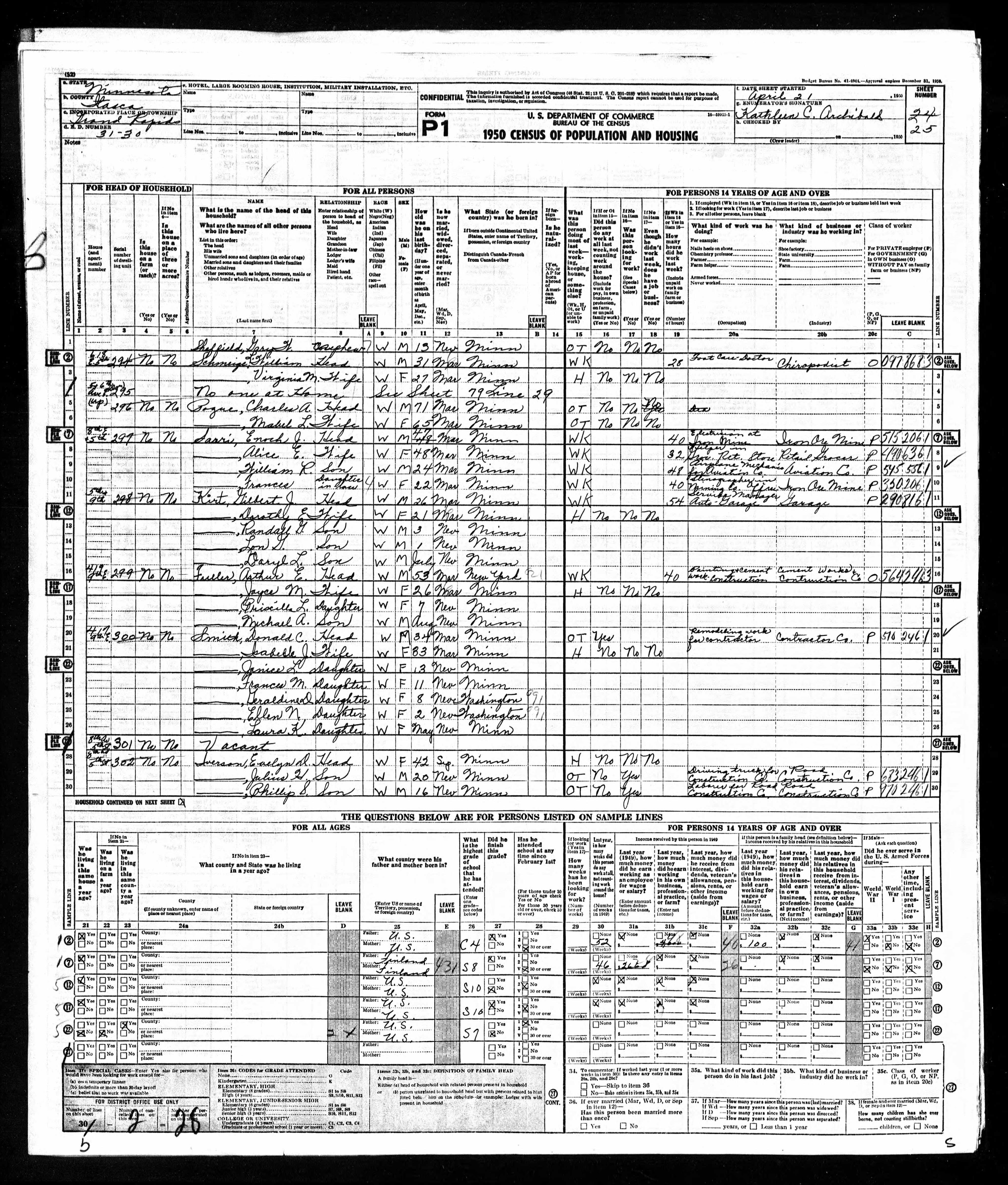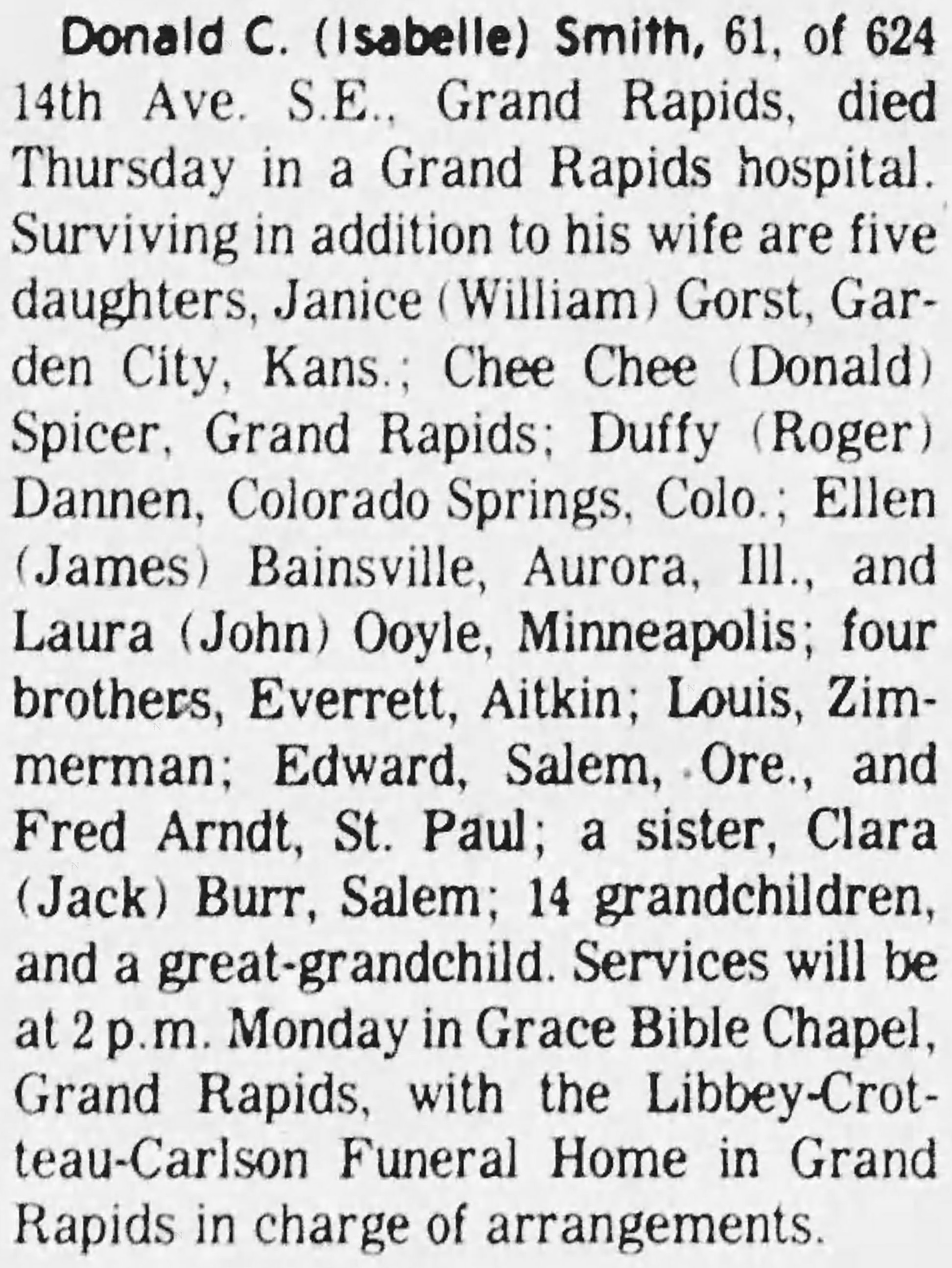 - 1950 Census - Grand Rapids, Itasca Co, MN (Listed as Donald C. Smith, age 34, head of household)