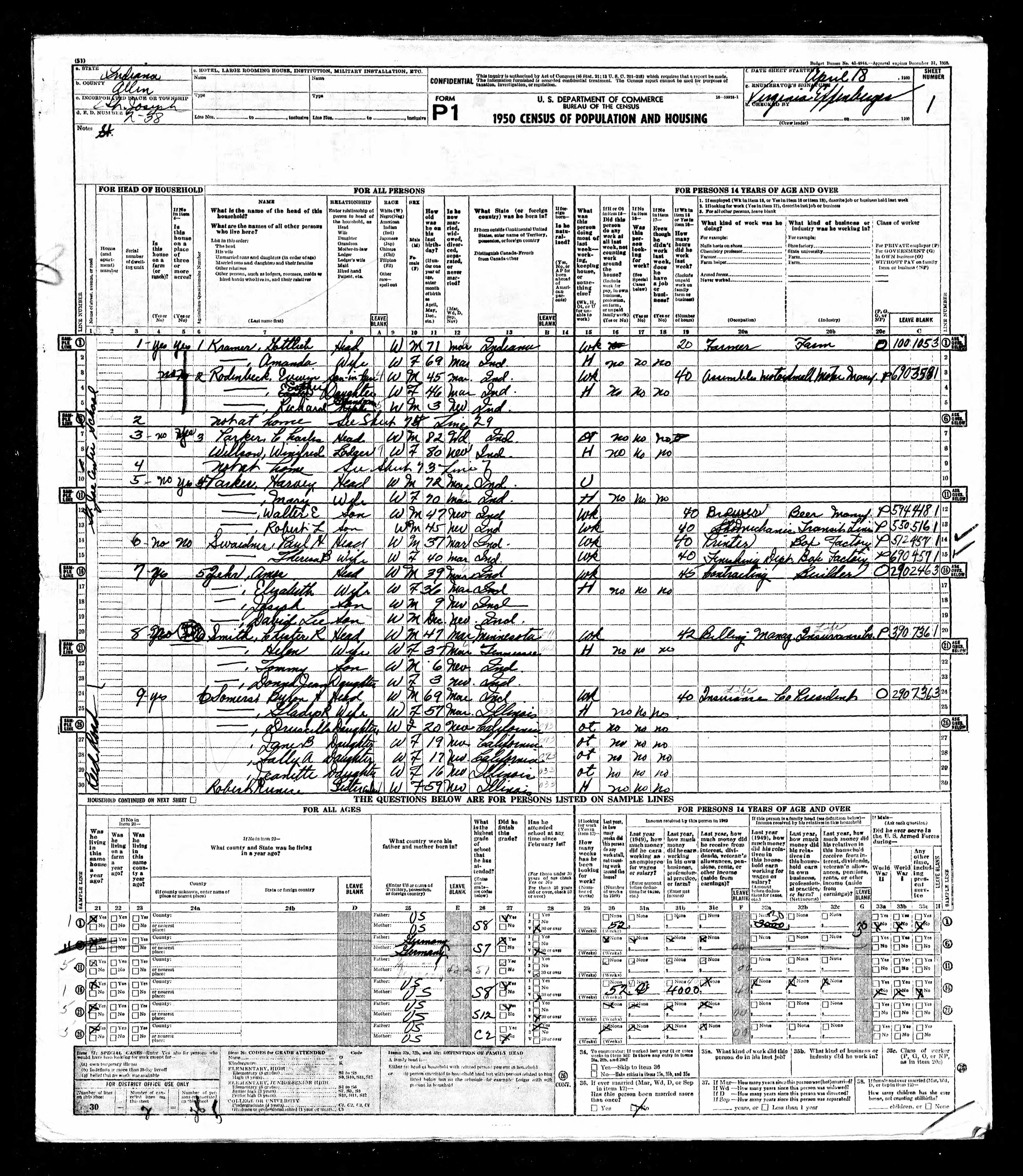 - 1950 Census - St. Joseph, Allen Co, IN (Listed as Chester R. Smith, age 47, head of household)