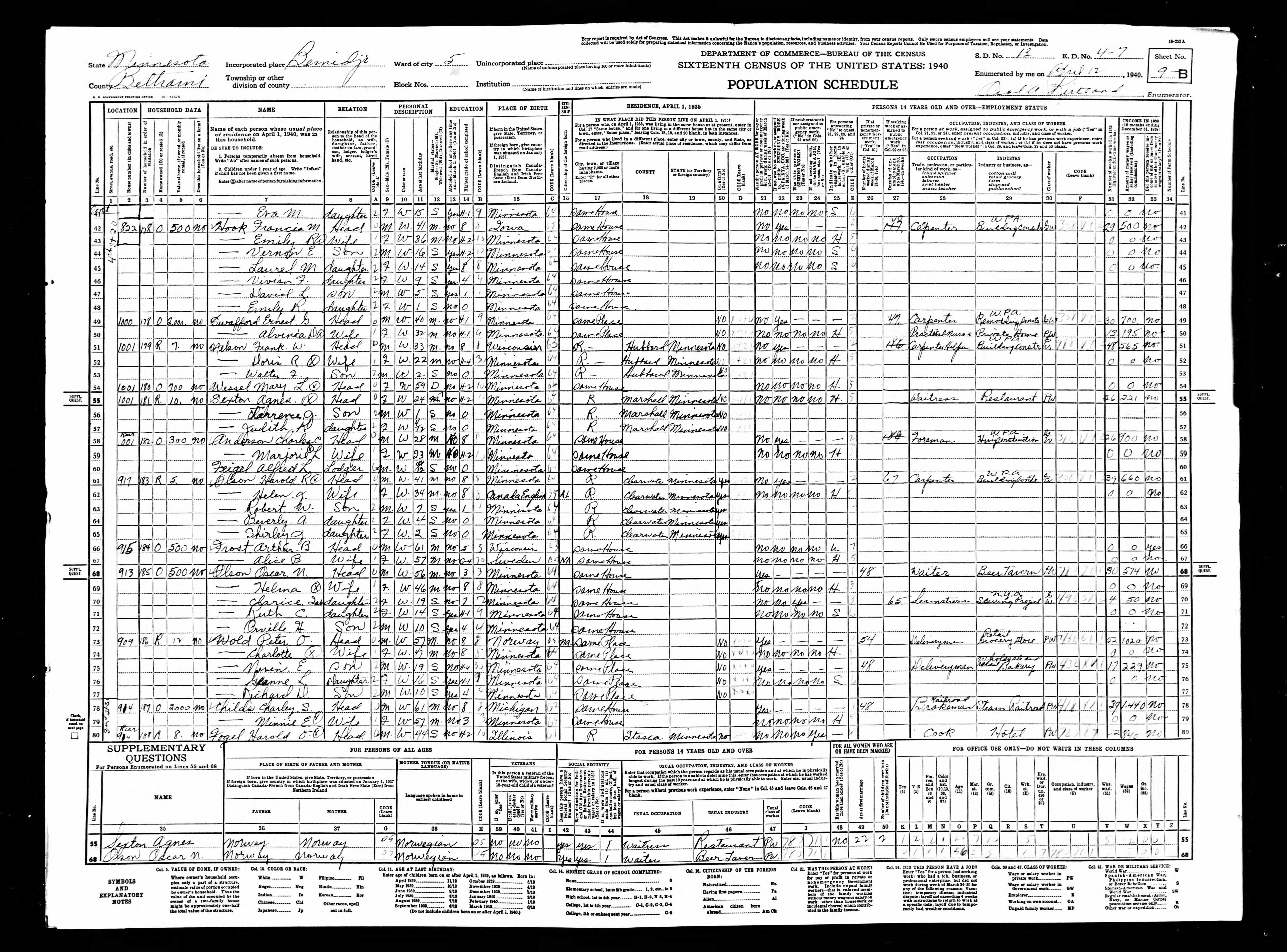 - 1940 Census - Bemidji, Beltrami Co, MN (Listed as Alvina D., age 32, wife of Ernest G. Swafford)