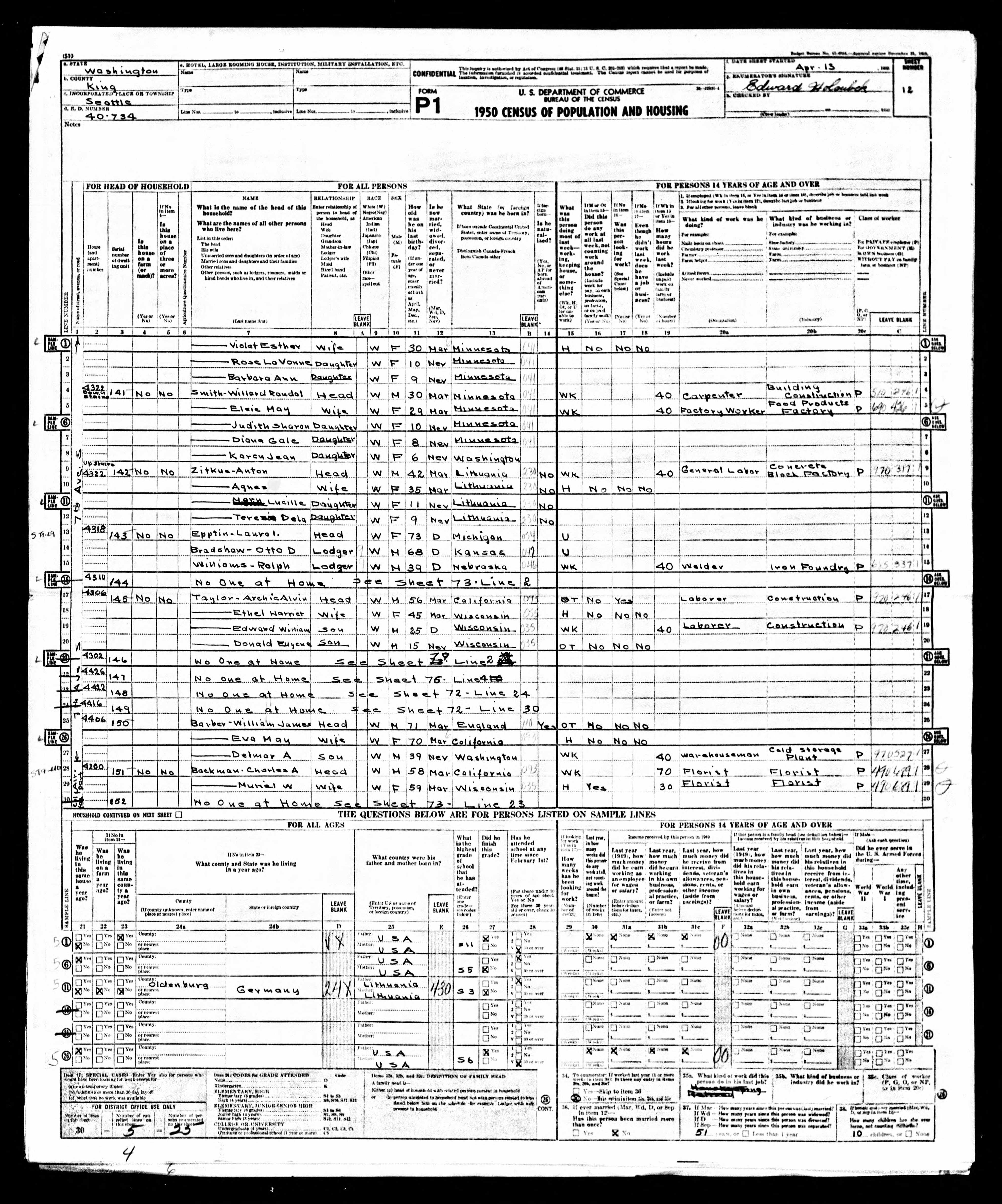 - 1950 Census - Washington, DC (Listed as Willard Randal Smith, age 30, head of household)