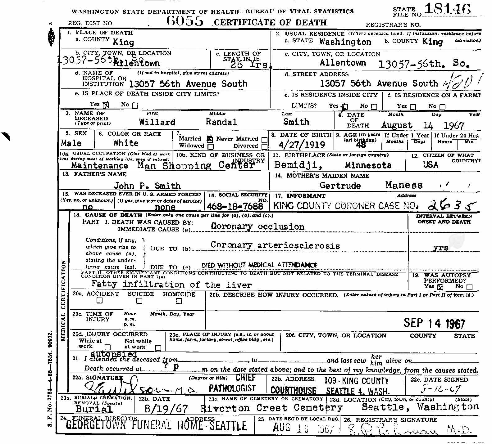 - Death Certificate - Death certificate for Willard