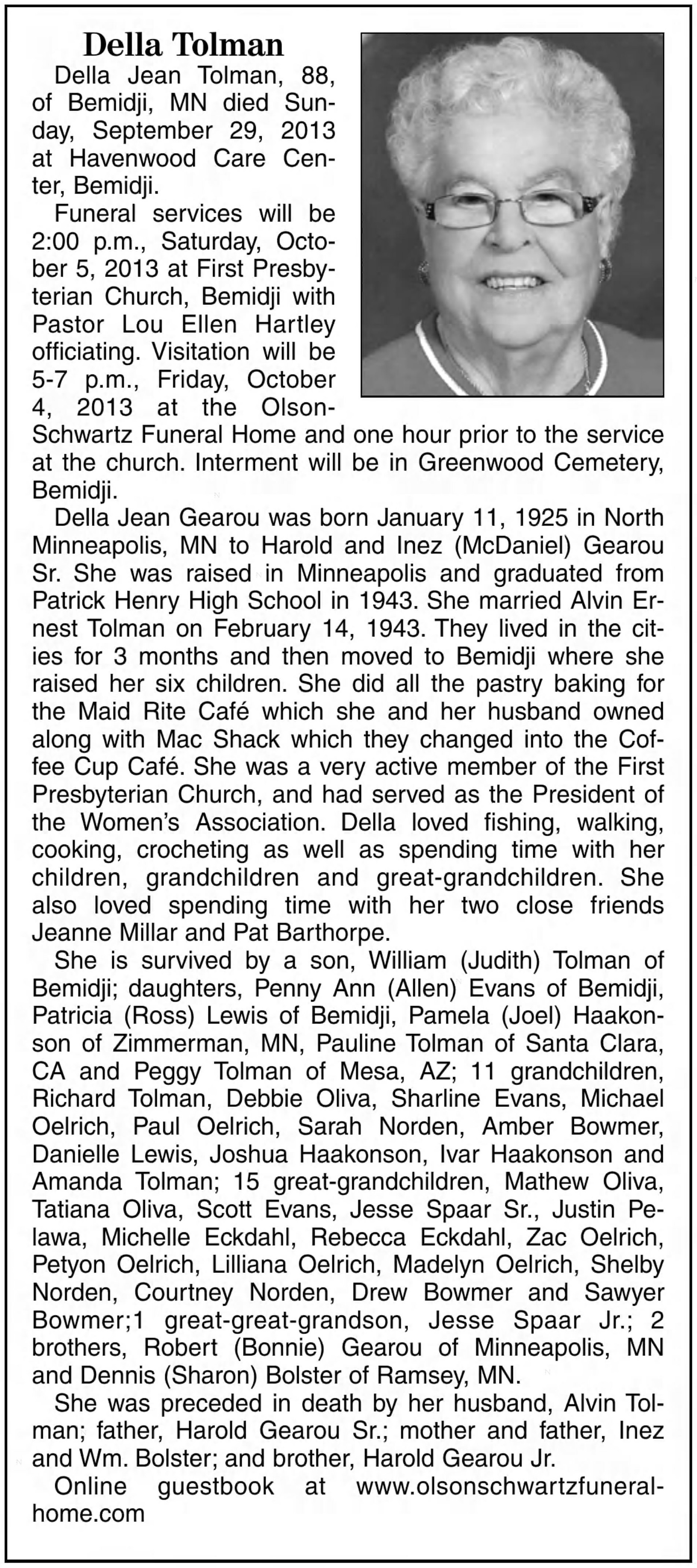 | Died: | September 29, 2013 in Bemidji, Beltrami Co, MN. View Obituary |