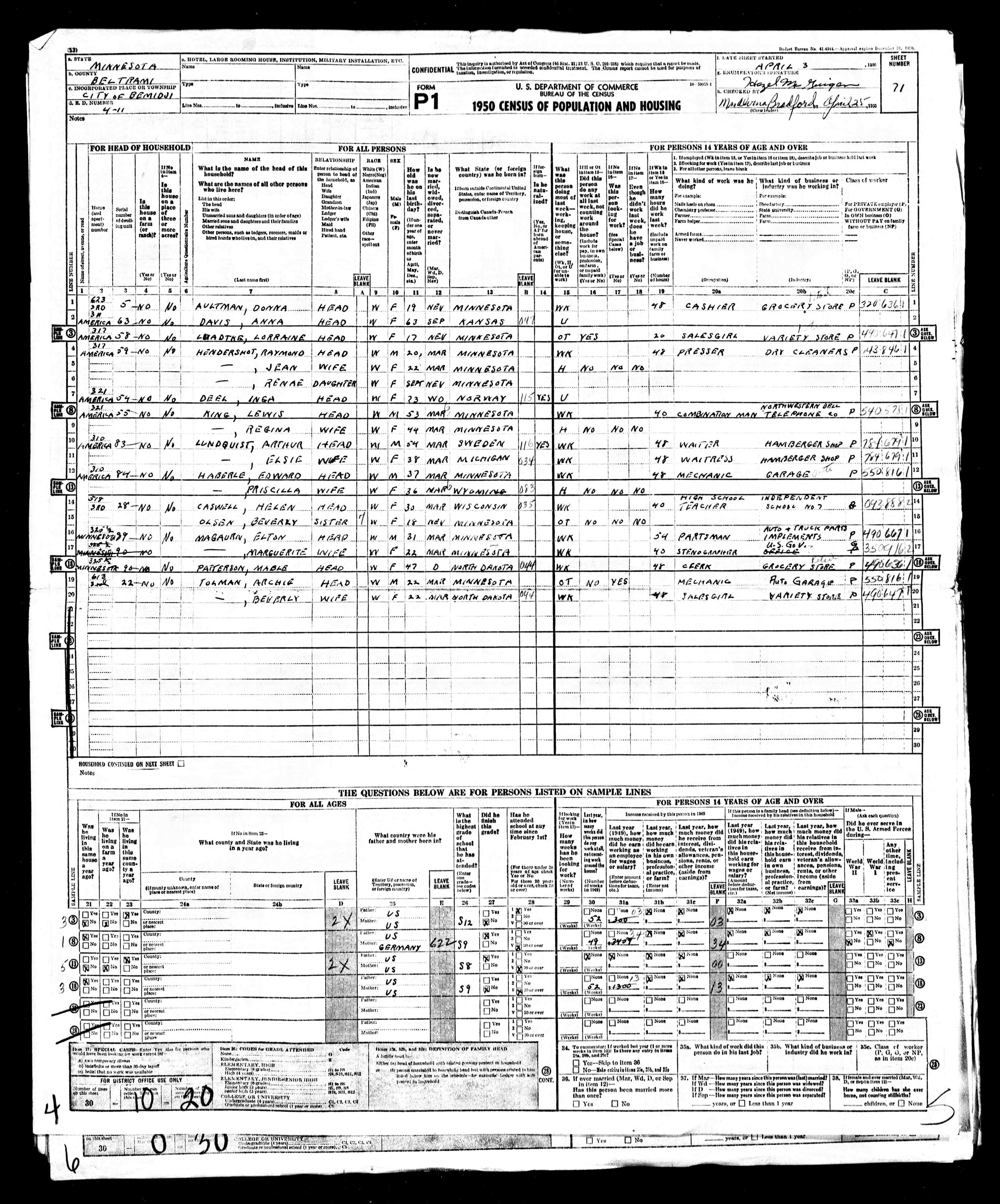 - 1950 Census - Bemidji, Beltrami Co, MN (Listed as Archie Tolman, age 22, head of household)